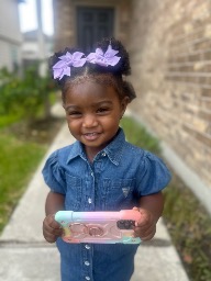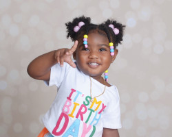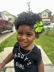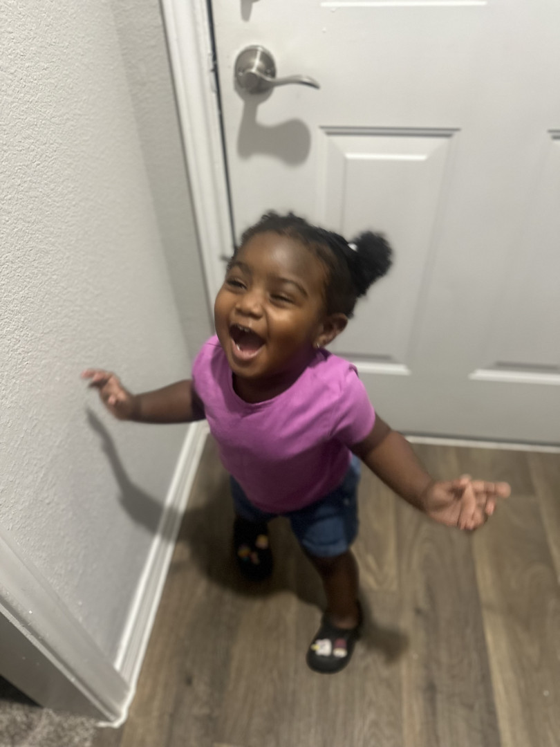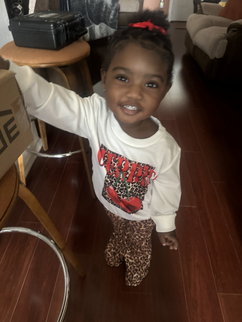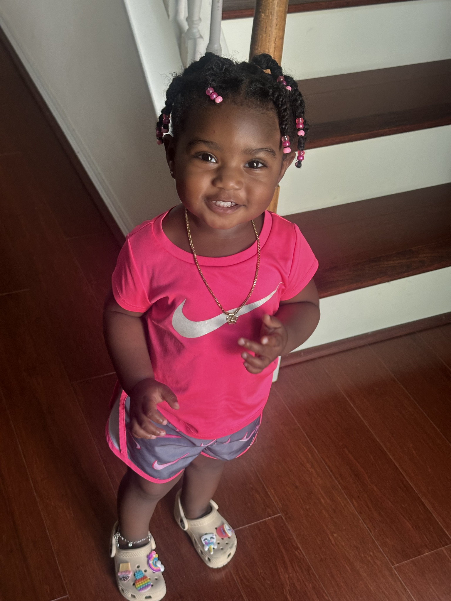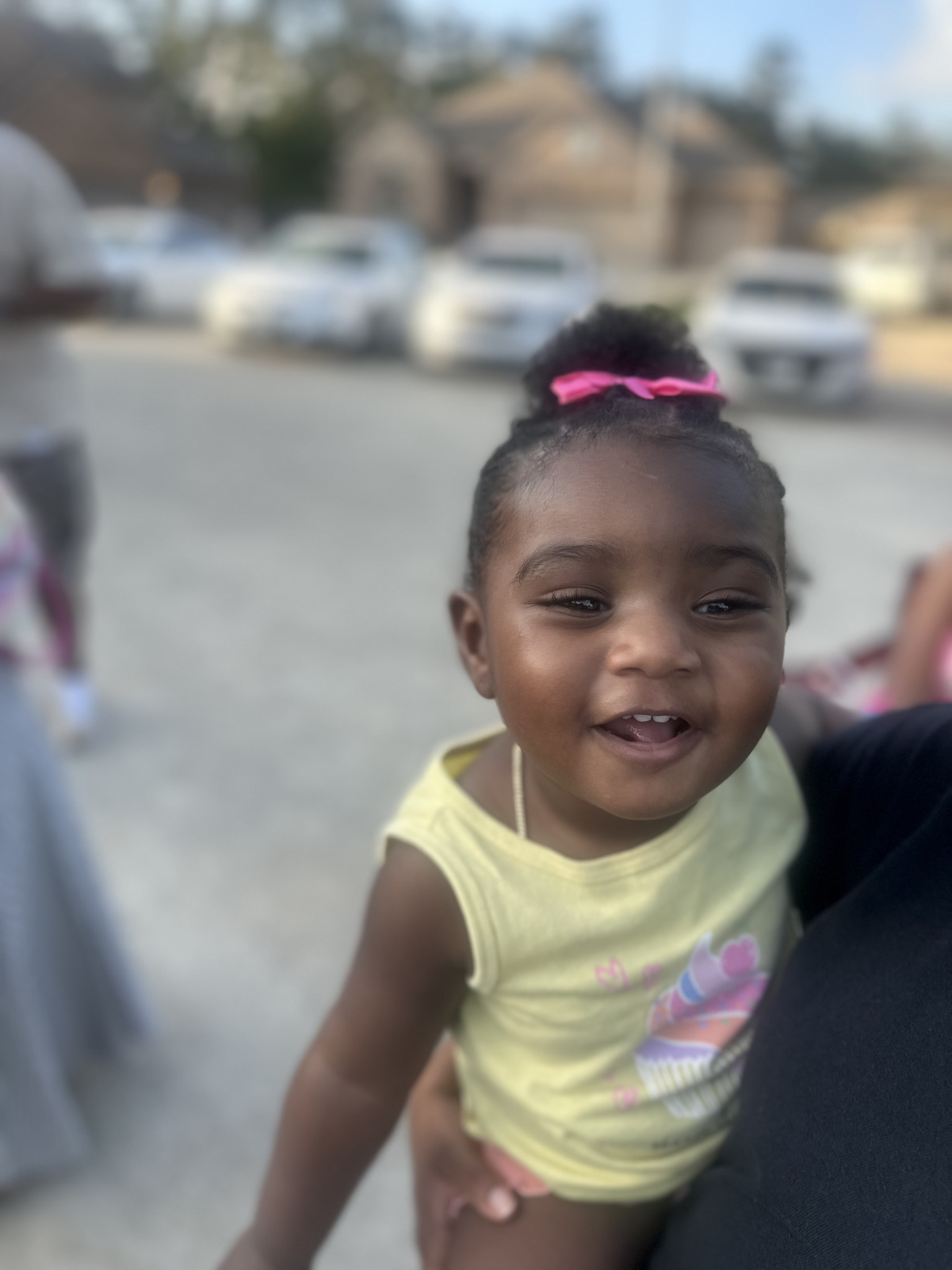 A’Maree is a sassy, sweet, and hilariously spicy little star. Her infectious laughter melts hearts, and she’s always ready to play or “chat” on the phone like a tiny old soul. She loves pointing out animals—though at the moment, in her world, everything is a dog!