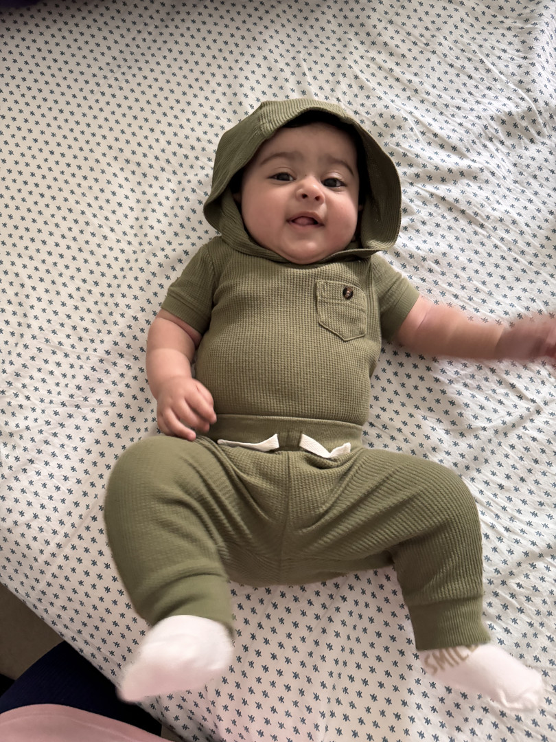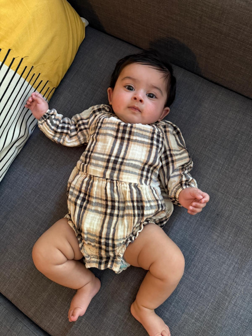What are Aarohi Sharma's favorite activities?Aarohi Sharma’s favorite activity is simply spreading joy wherever she goes! She loves listening to her parents’ voices, kicking her tiny legs with excitement, and watching colorful toys with wide, curious eyes. Tummy time is always a fun adventure, and snuggling close for cuddles is her absolute favorite way to feel happy and loved. Every little moment is magical when Aarohi is exploring and enjoying the world around her.