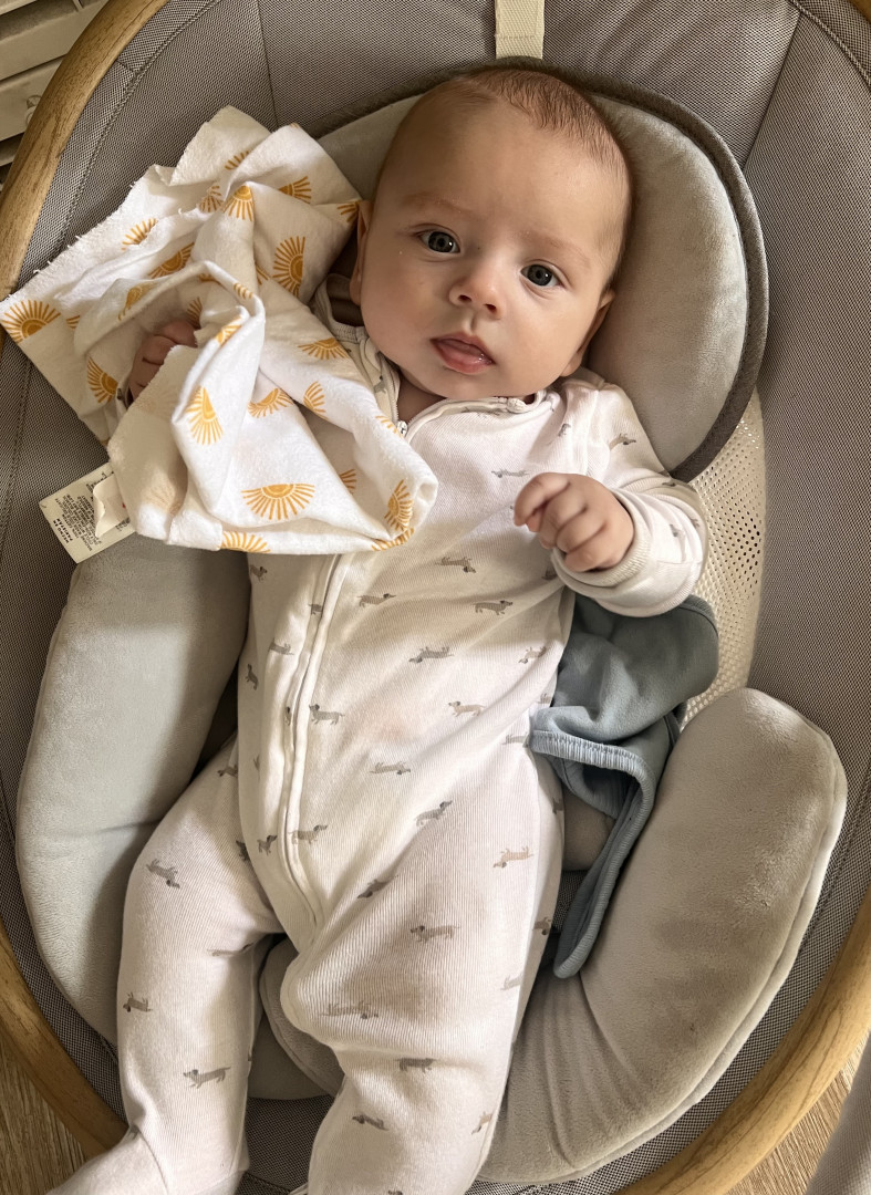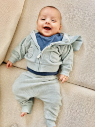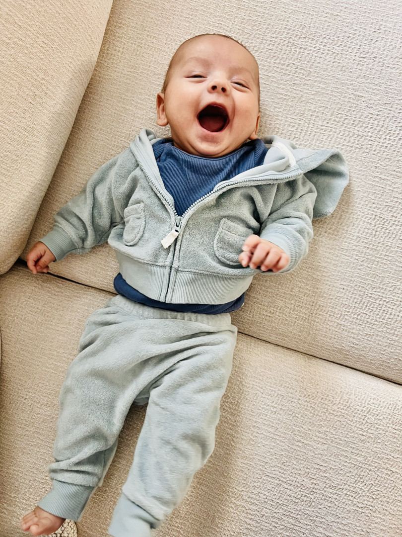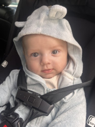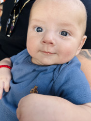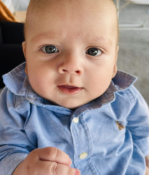 He likes to be with mommy, daddy and brothers. He smiles and babble to everyone,