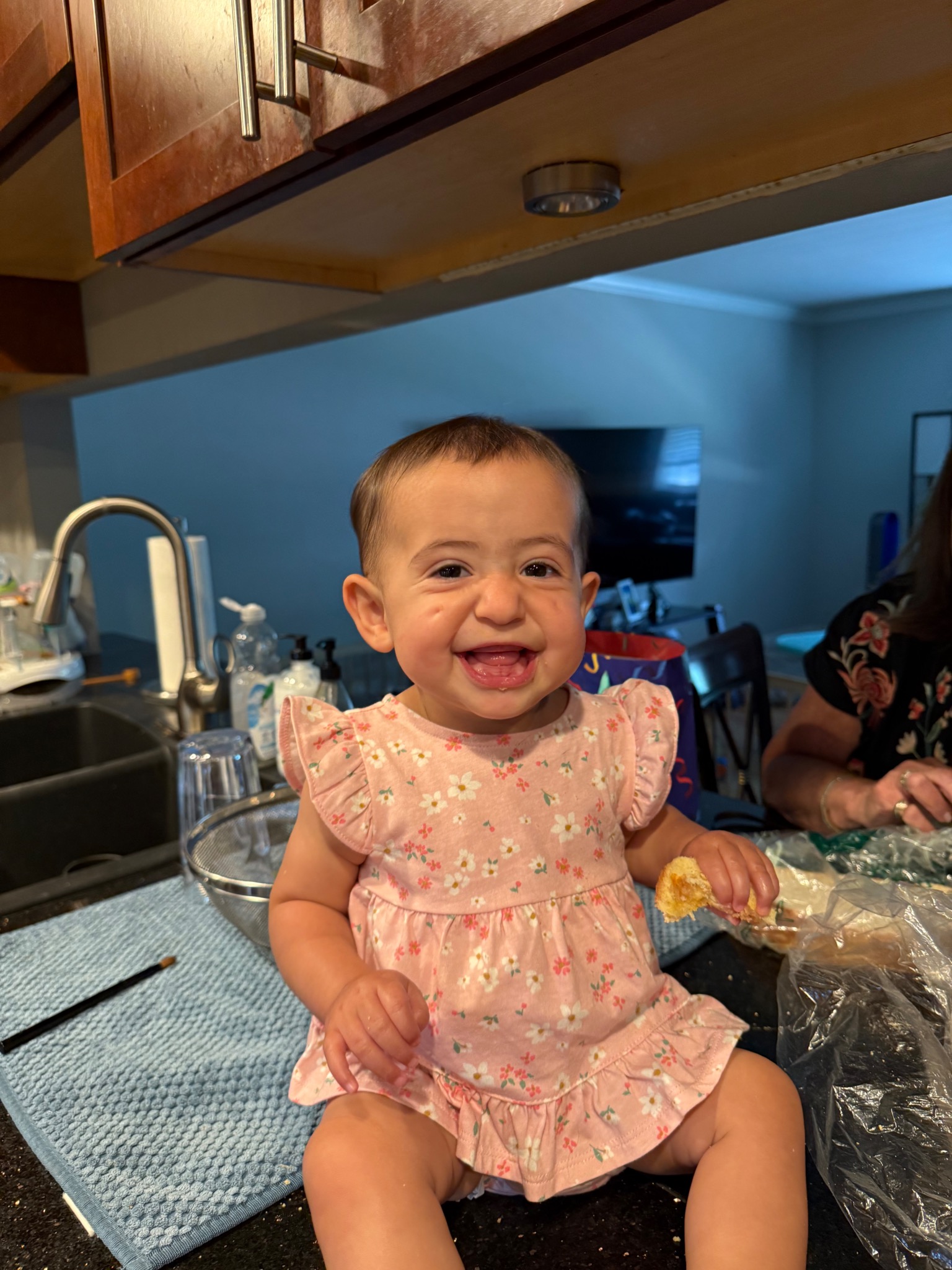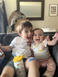What are Abigail's favorite activities?Laughing at her big brother is her favorite past time! She loves clapping to music and playing with instruments. The swing is fun too!