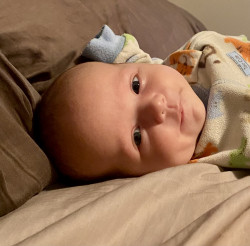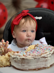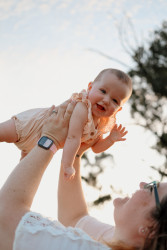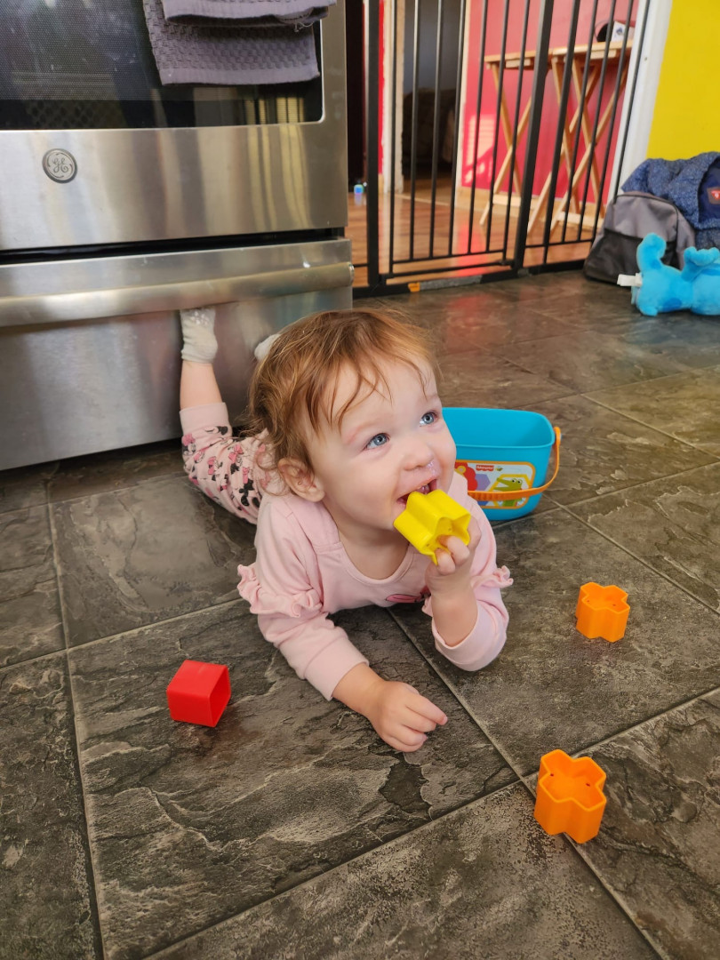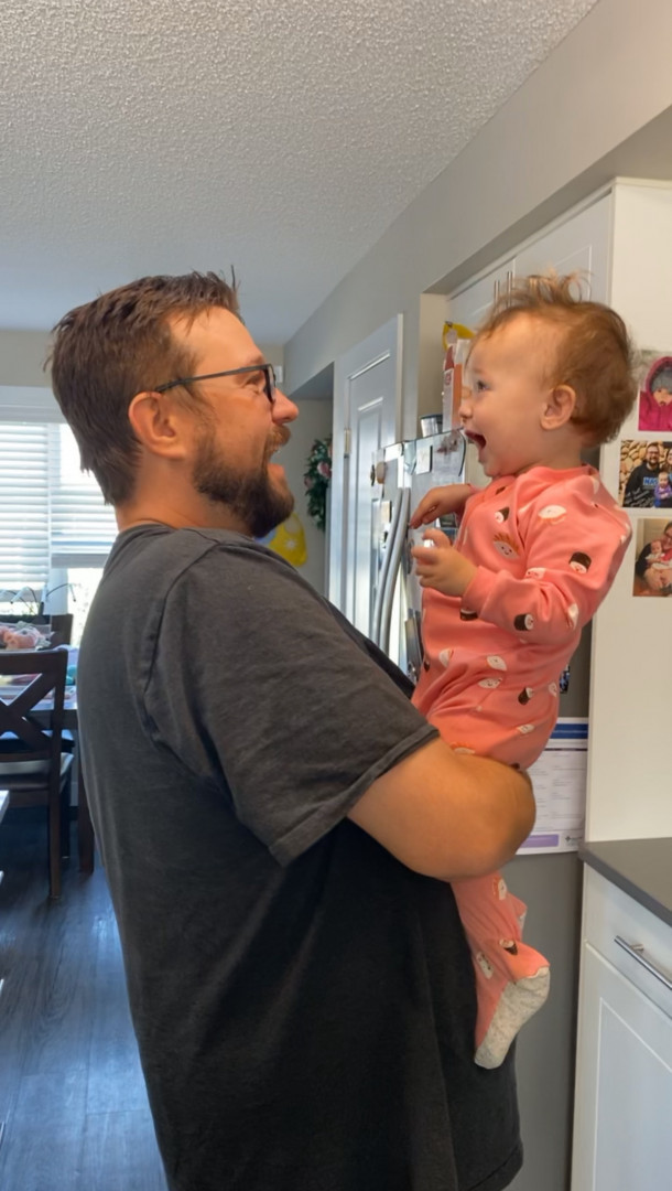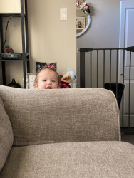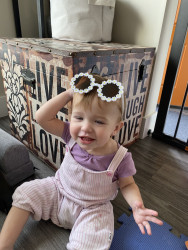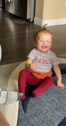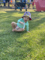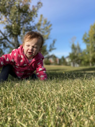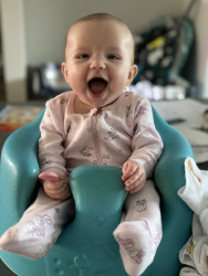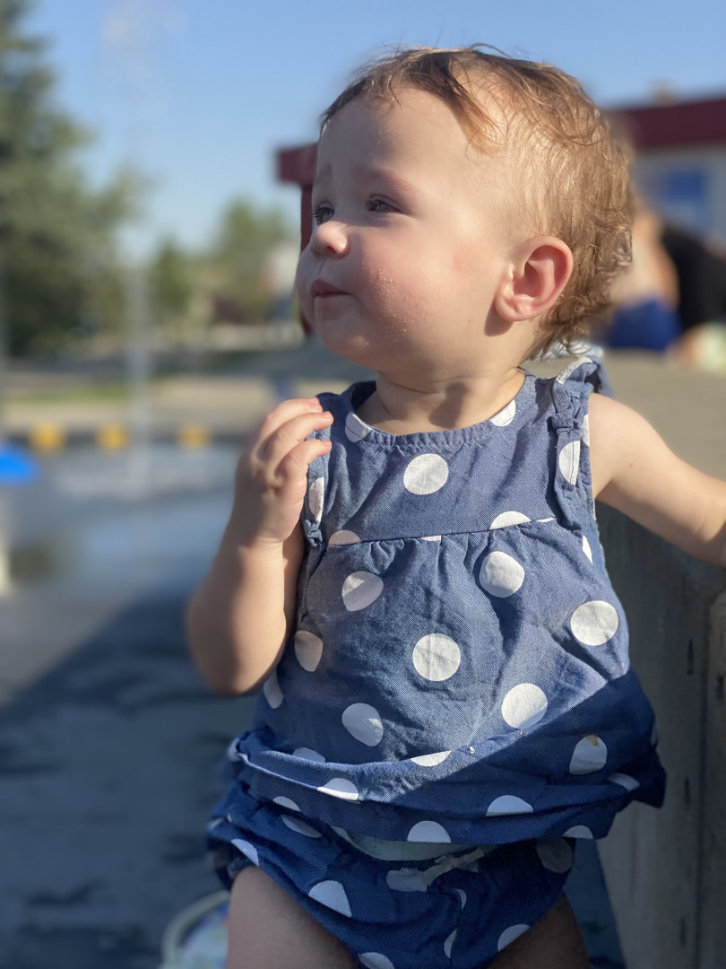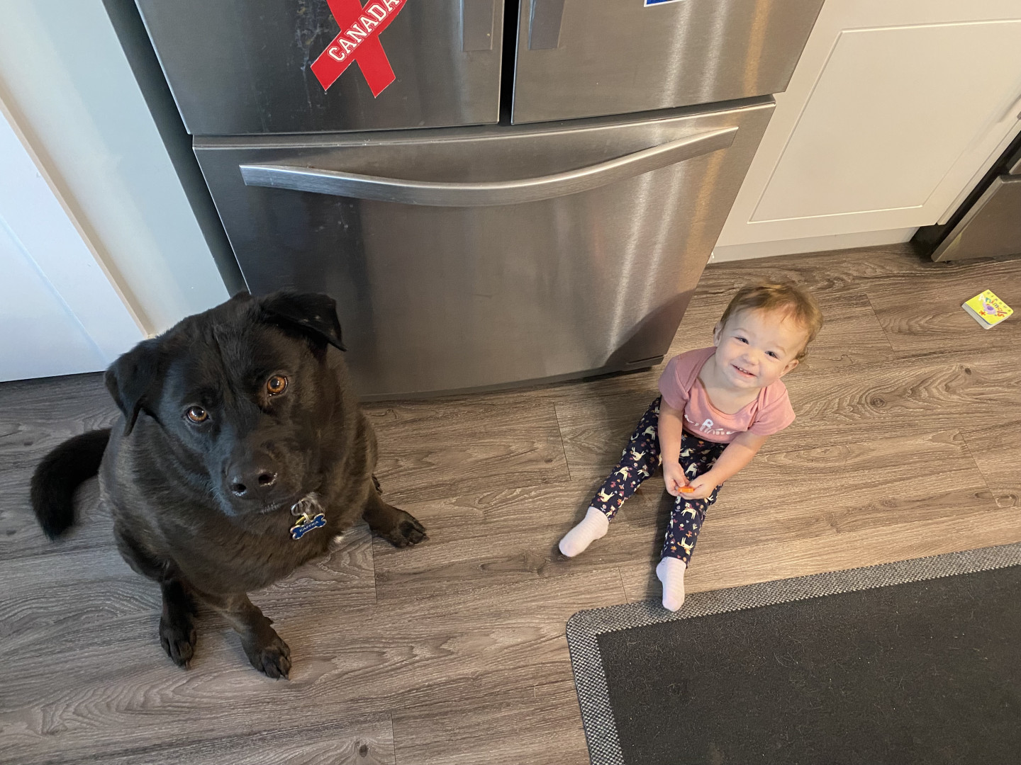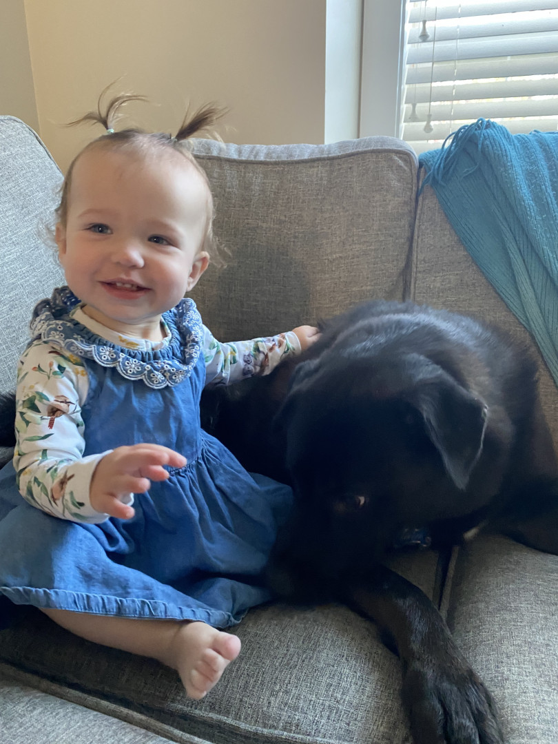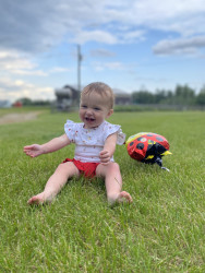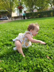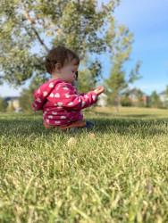 What are Abigail's favorite activities?Abigail’s favourite thing to do is follow around her big fur-brother. Nothing makes her giggle faster than him licking her or eating food out of her hand. She also loves the water - bath time is her favourite time of day! She loves to splash and kick her feet! Mama thinks she’ll be an olympic artistic swimmer one day with her great eggbeater kick! Abigail loves the outdoors. If she is out of sorts, sitting in the grass or playing in the sand will always make her happy!