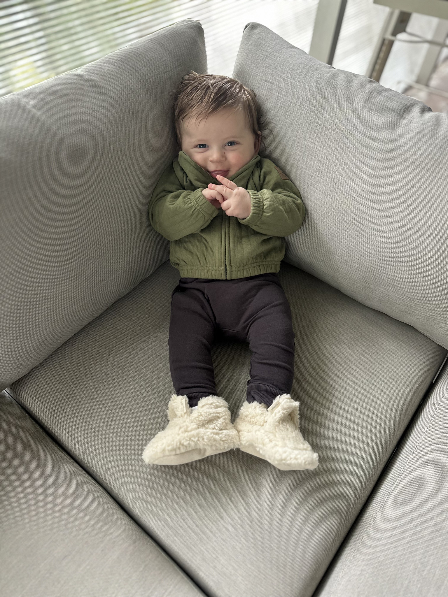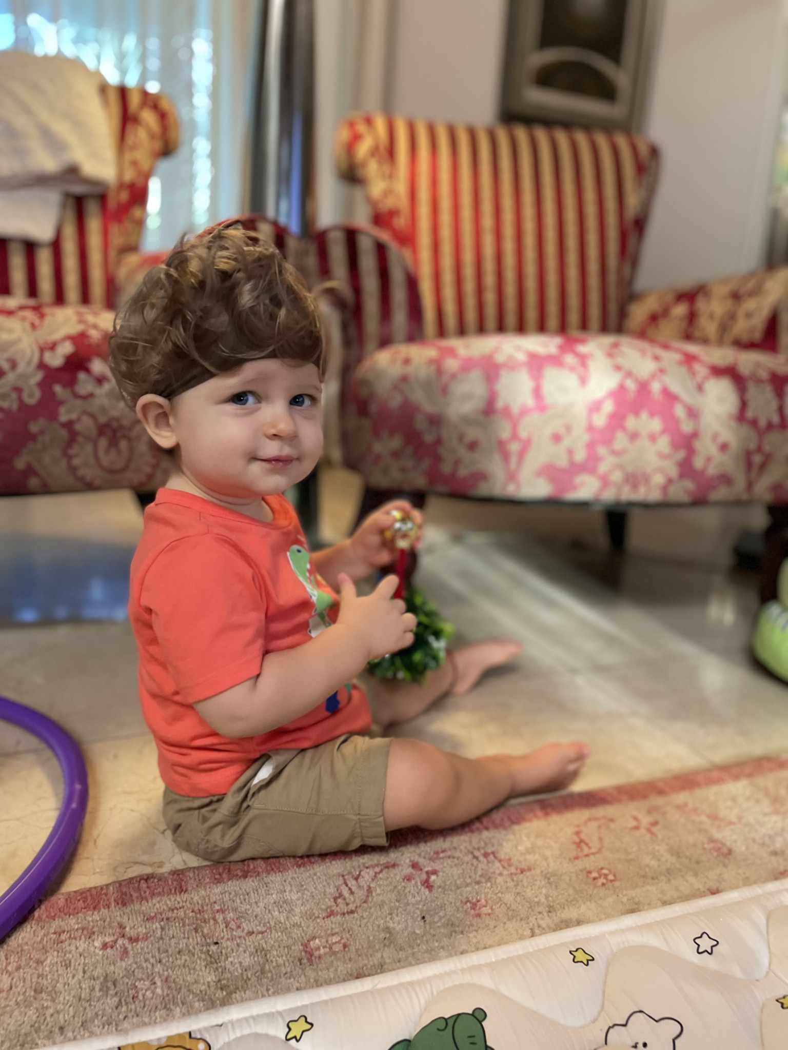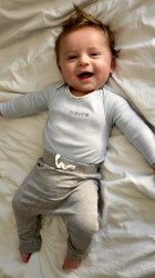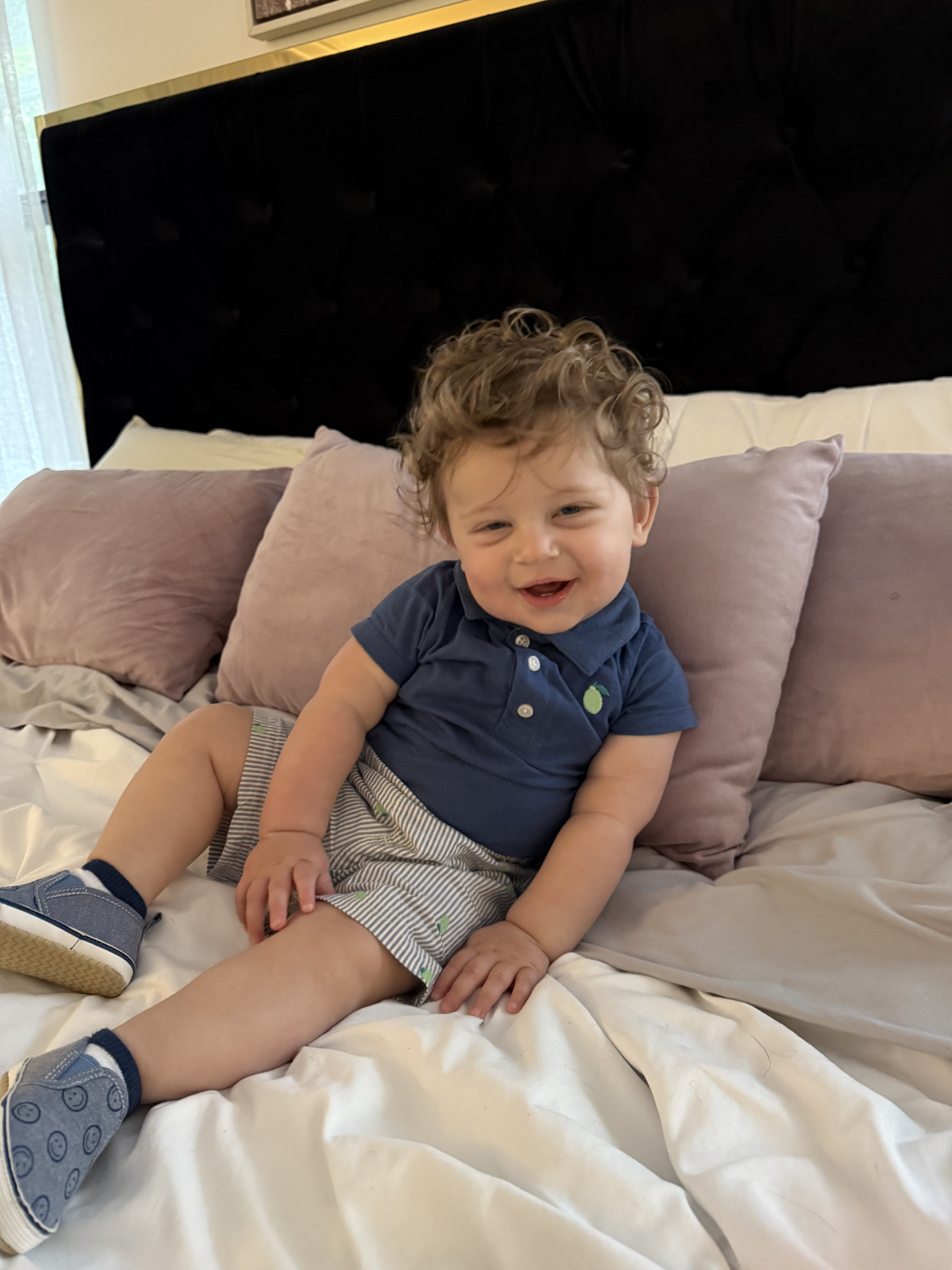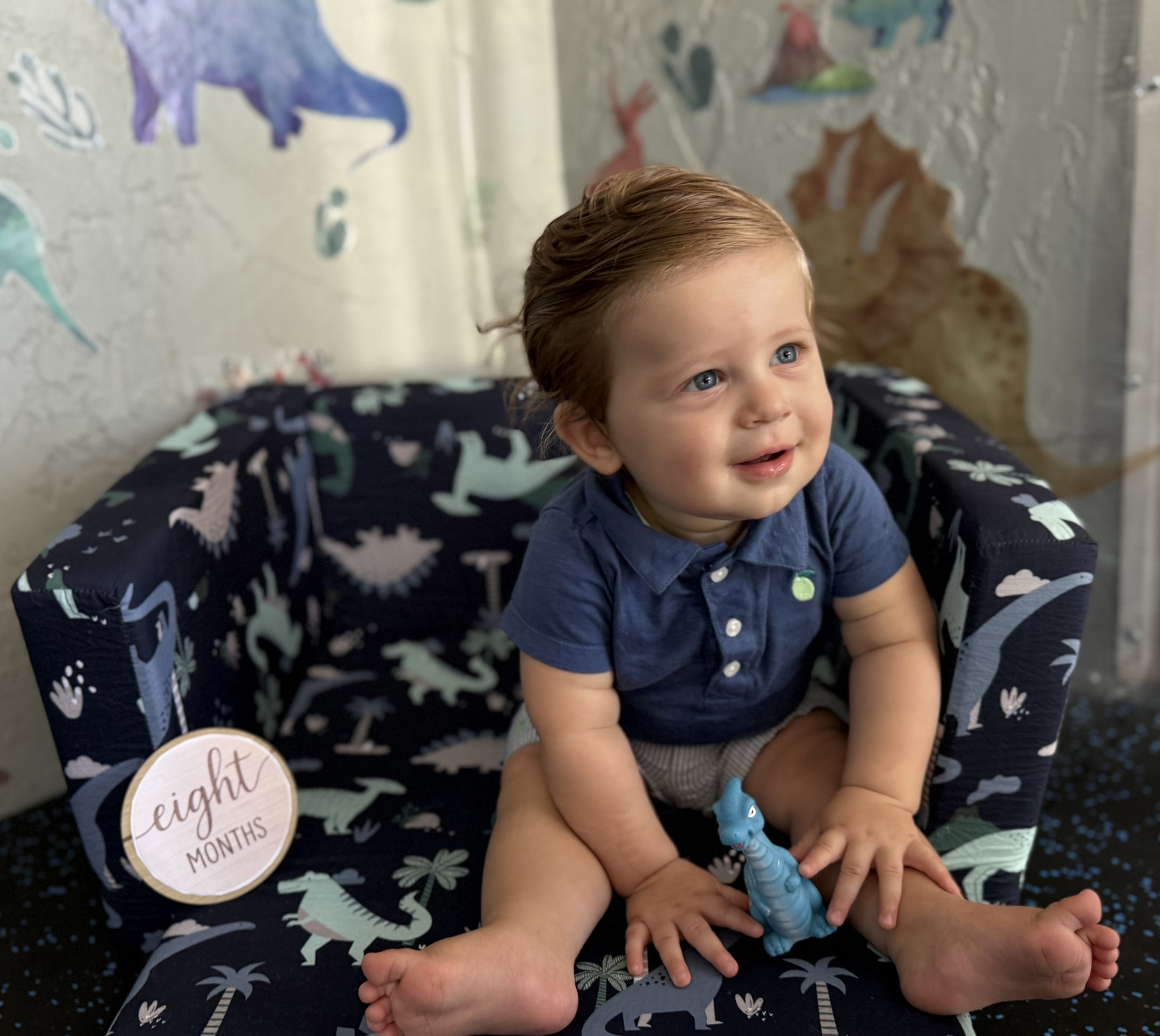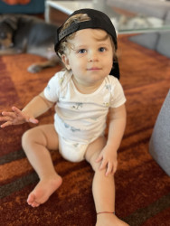 Adrian is bursting with curiosity and charm. He’s incredibly smart, already a speedy crawler learning to take his first steps. He loves to babble and “sing” with mama and dada, filling the house with sweet little tunes. Music makes him light up, he’ll happily dance to his favorite songs with the biggest smile. His playful side shines when tossing balls to his furry brothers, showing his joyful, adventurous spirit and love for fun.