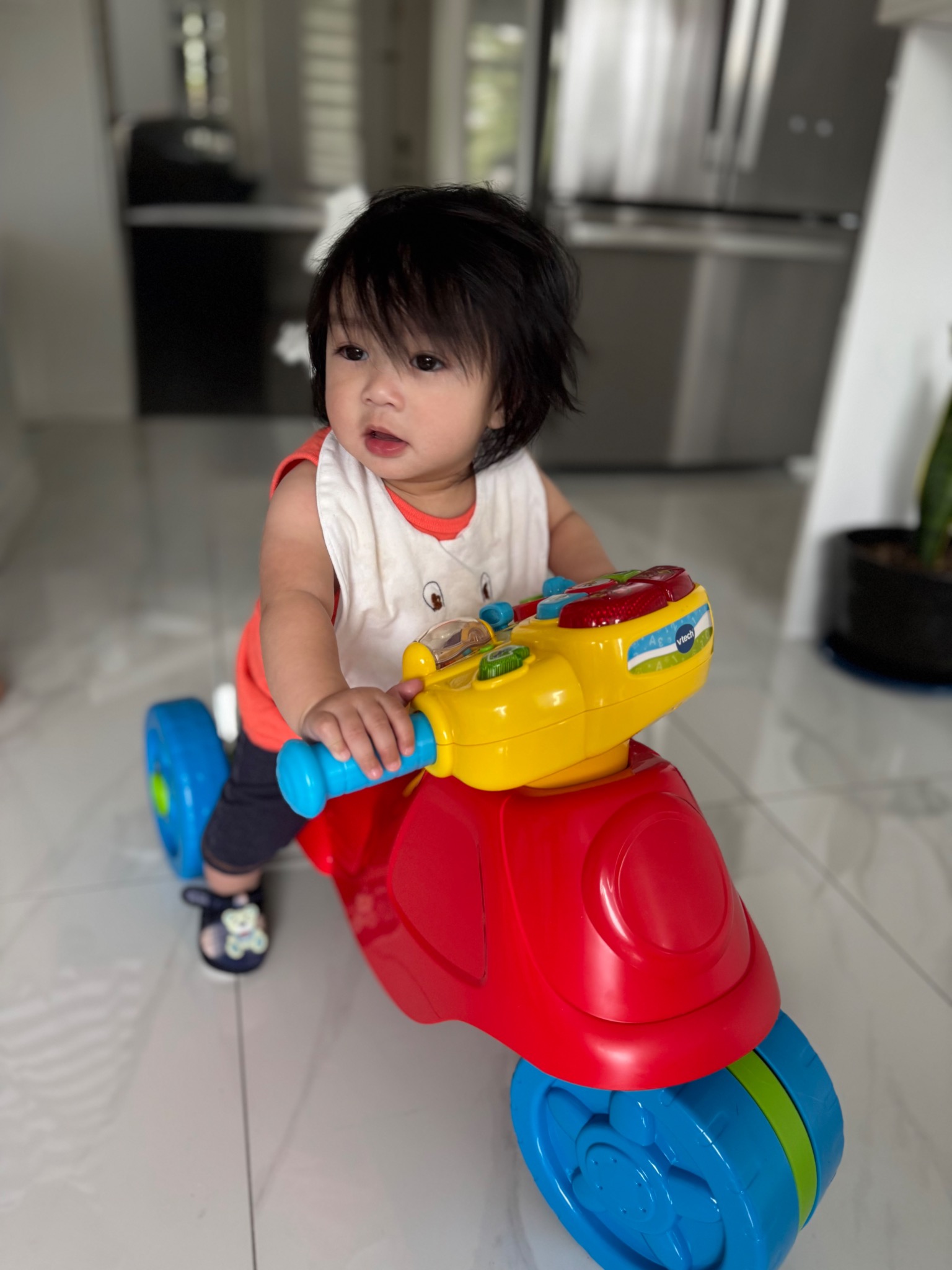 What are Aiden Thaddeus Salvador's favorite activities?Aiden loves outdoor, rides his motorbike,plays in park and the swing, grabs things and bites. He also starts wondering and exploring the surroundings.