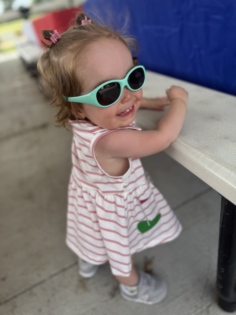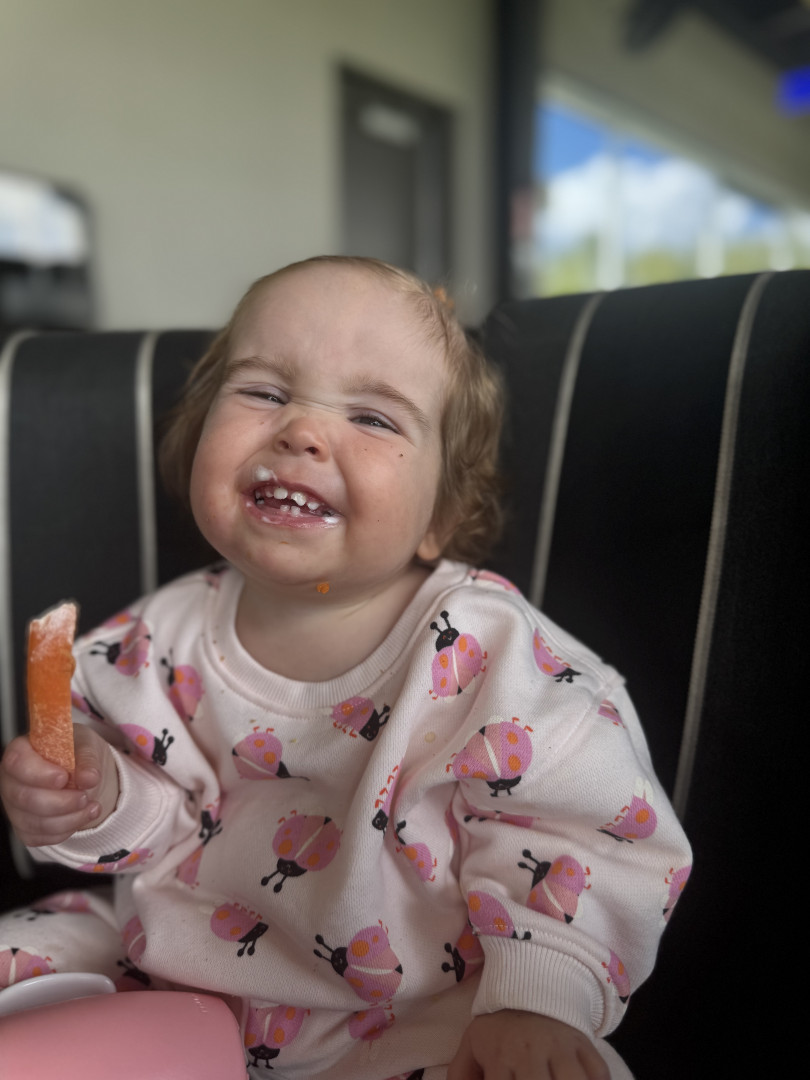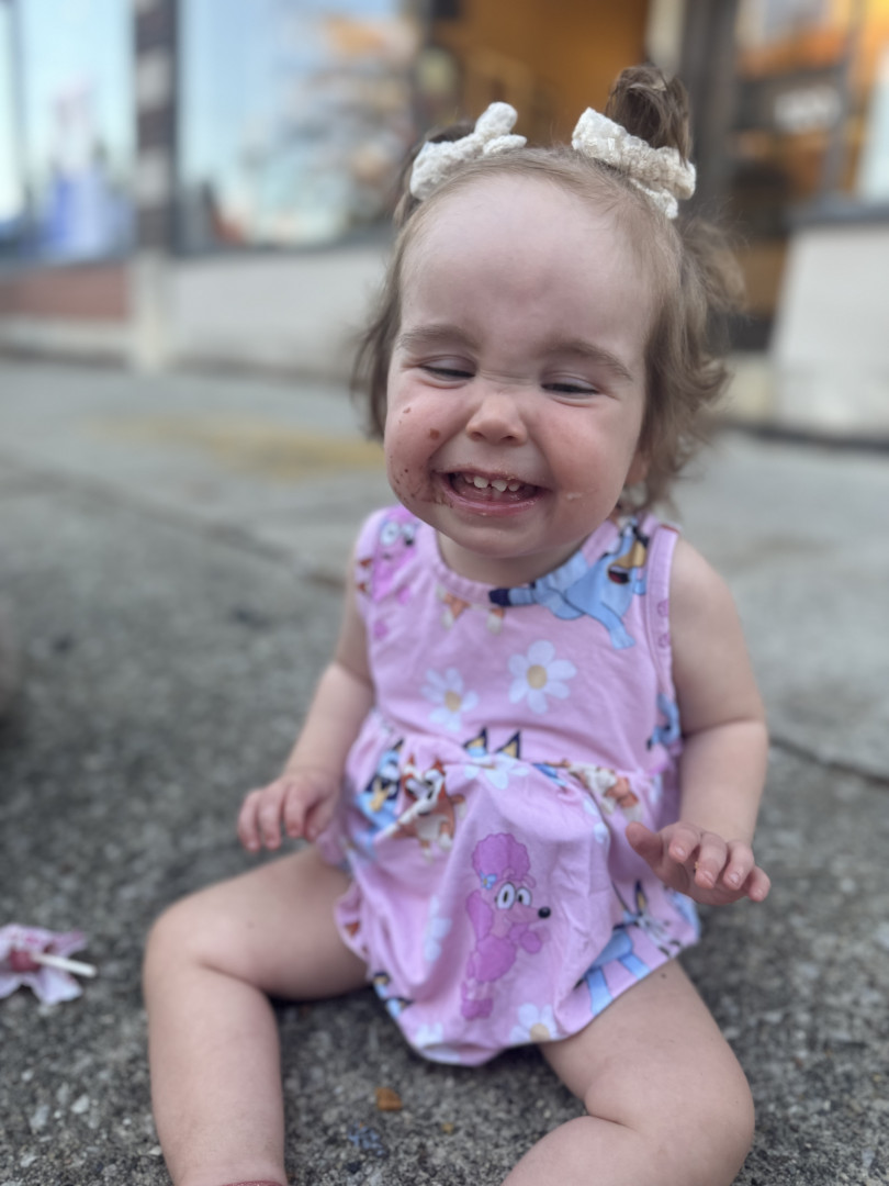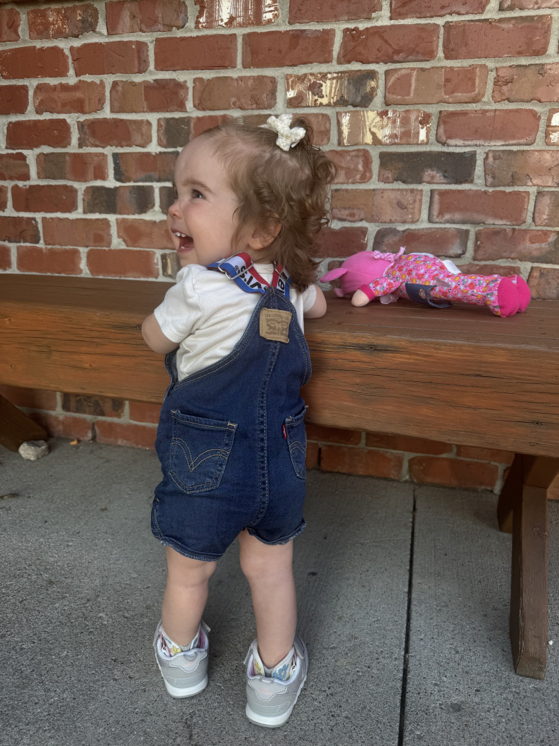 AJ has the most spunk I've ever seen in a kid. While also having the purest heart. I've never met a baby that loves truly everyone and AJ truly does. Strangers stop at restaurants, stores, etc. just to comment on how beautiful and friendly she is.