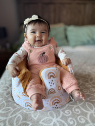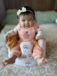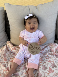 What are Alaina's favorite activities?Her favorite activities include Olympic-level babbling, gold medal fist chewing, and running the “Ceiling Fan Appreciation Club.” She’s also a master drool bubble artist and brings endless giggles to her two older sisters, simply by being the sweetest little listener.