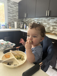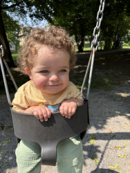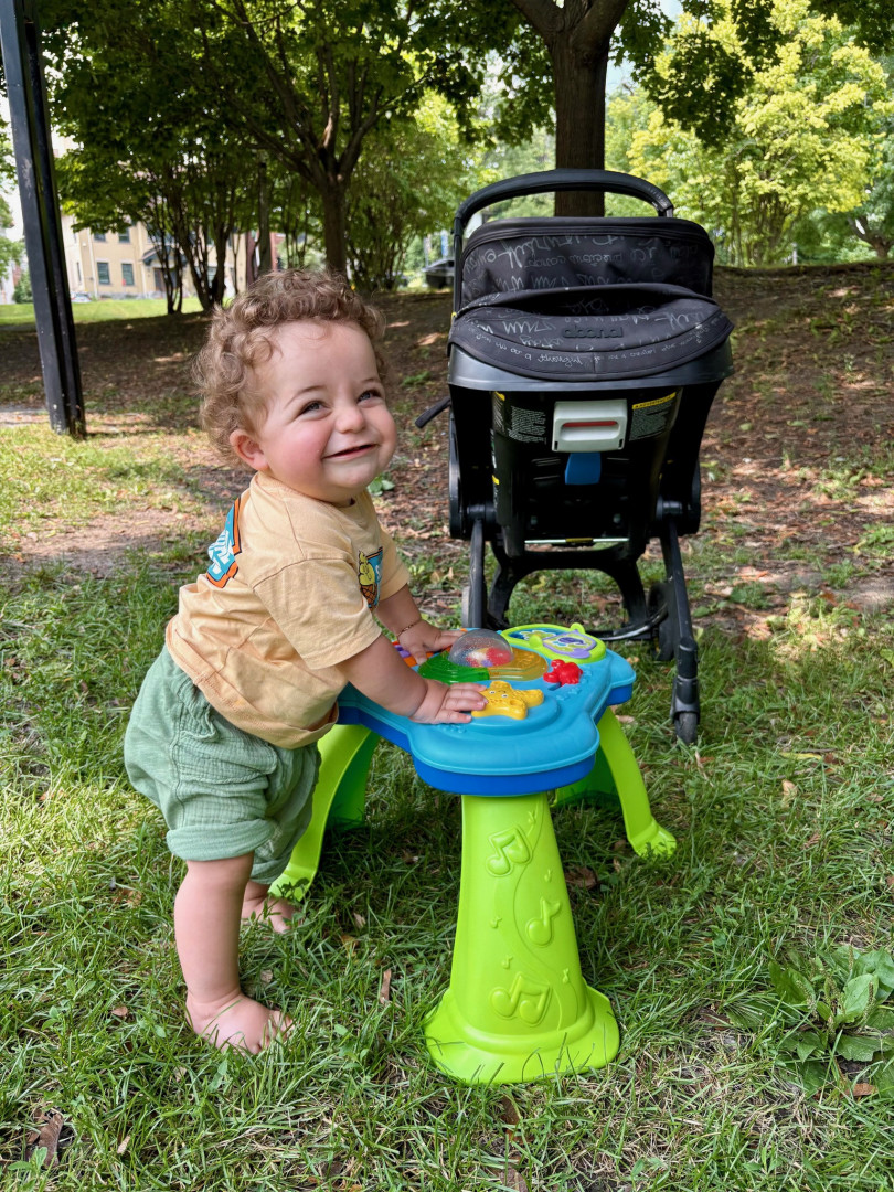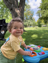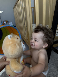 Amadeus is a bright and silly 14-month-old already showing a big personality, with a grin as big as his heart. He’s a happy, curious boy who loves to eat, mimic adults, and explore the world around him. Every day he grows more outgoing, clever, and full of life! He especially loves socializing with adults, tinkering with DJ decks, sharing all his things, and feeding other adults his food—just like his mama does for him!