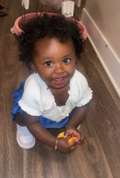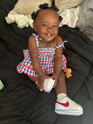Amaiya Marie has an exceptional ability to communicate her needs effectively, despite her limited vocabulary. she is learning how to sign and she is a fast learner. She has a delightful curiosity for exploring new foods, especially when they are presented on someone else's plate. She is a very funny baby: she loves to blow bubbles on her loved ones and she enjoys making others smile. which is very easy to do, as her little smile is contagious. She can light up any room with her cheerful aurora.