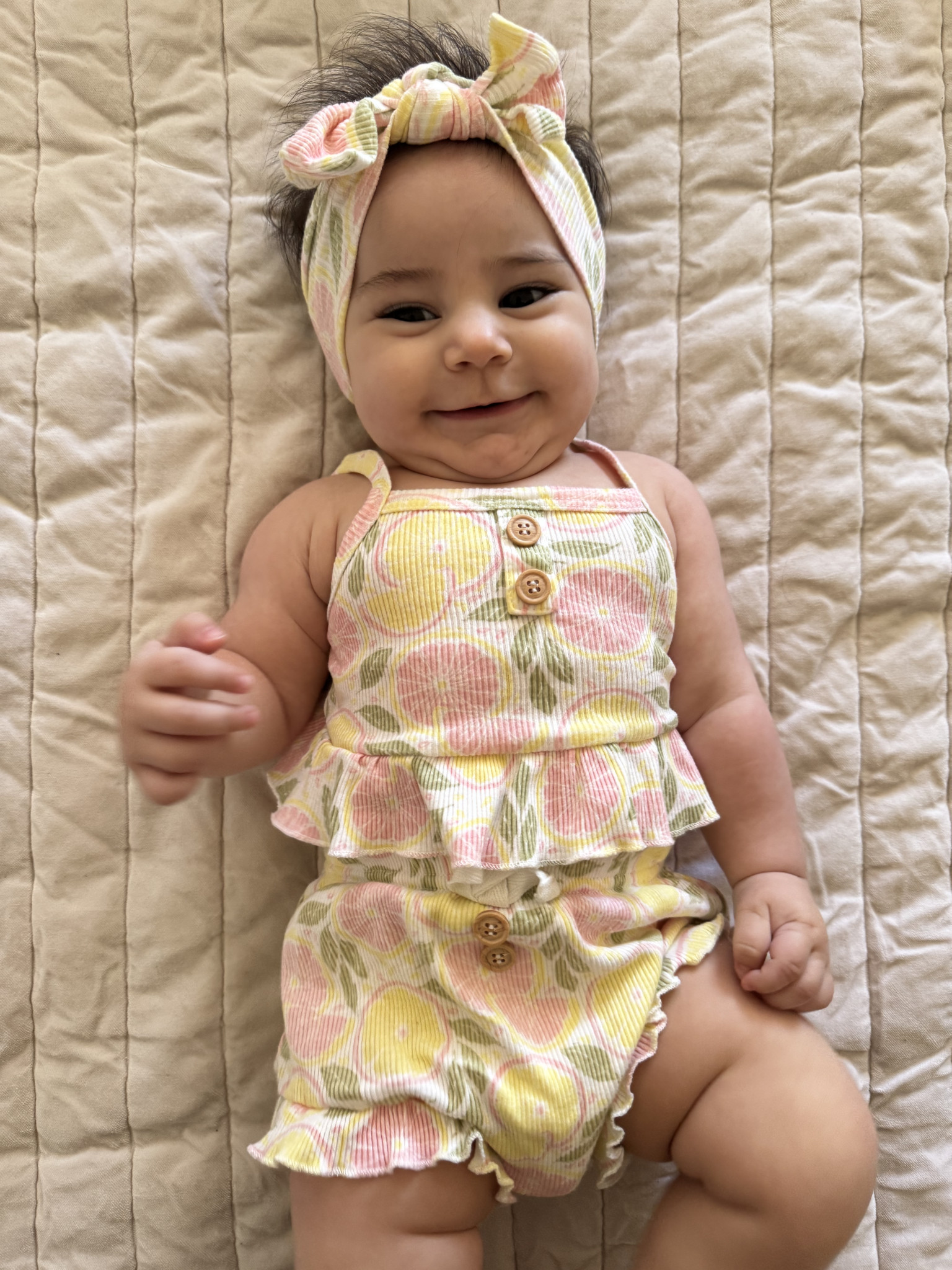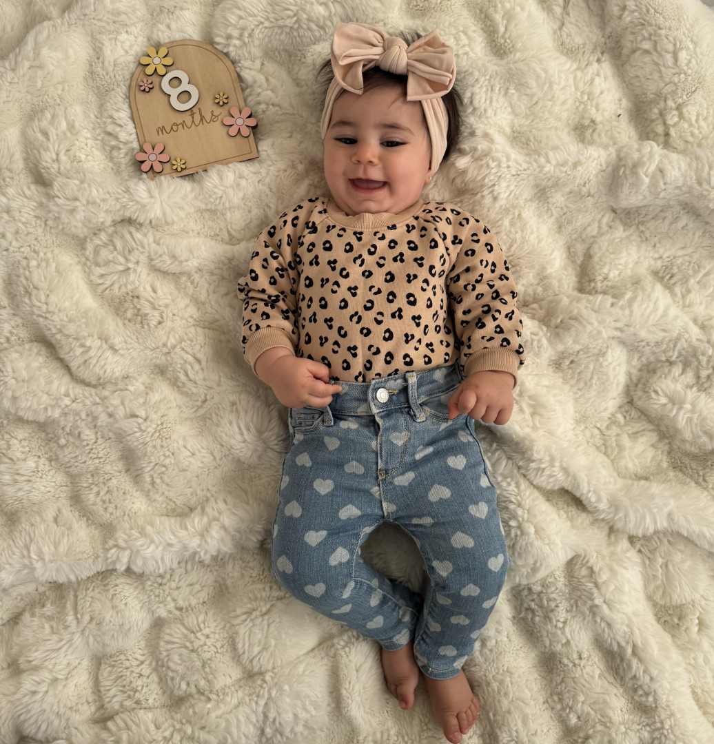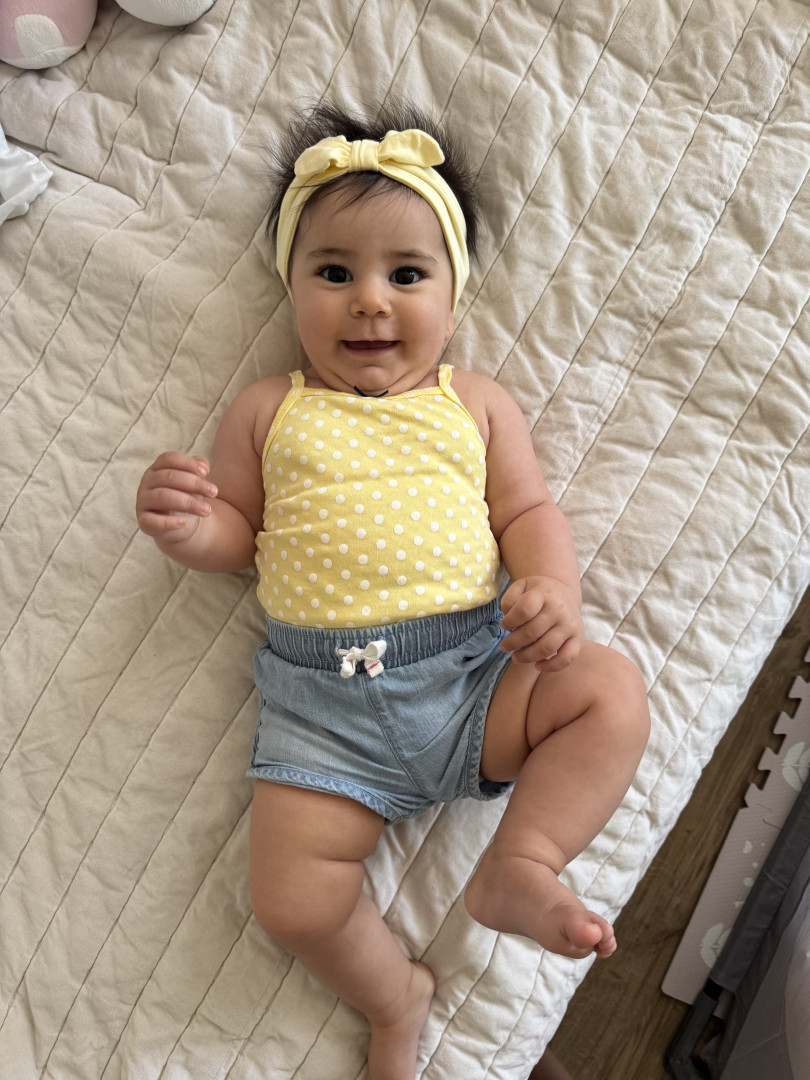 Amelia shines with a personality as bright as her smile. She's curious, fearless, and full of joy! Always exploring, laughing, and lighting up every room she enters. Her giggles are contagious, her hugs are pure magic, and her expressive little face says more than words ever could. Whether she's babbling new sounds or clapping to music, Amelia brings warmth, wonder, and a spark of fun to everyone around her. She's small, but her spirit is mighty.