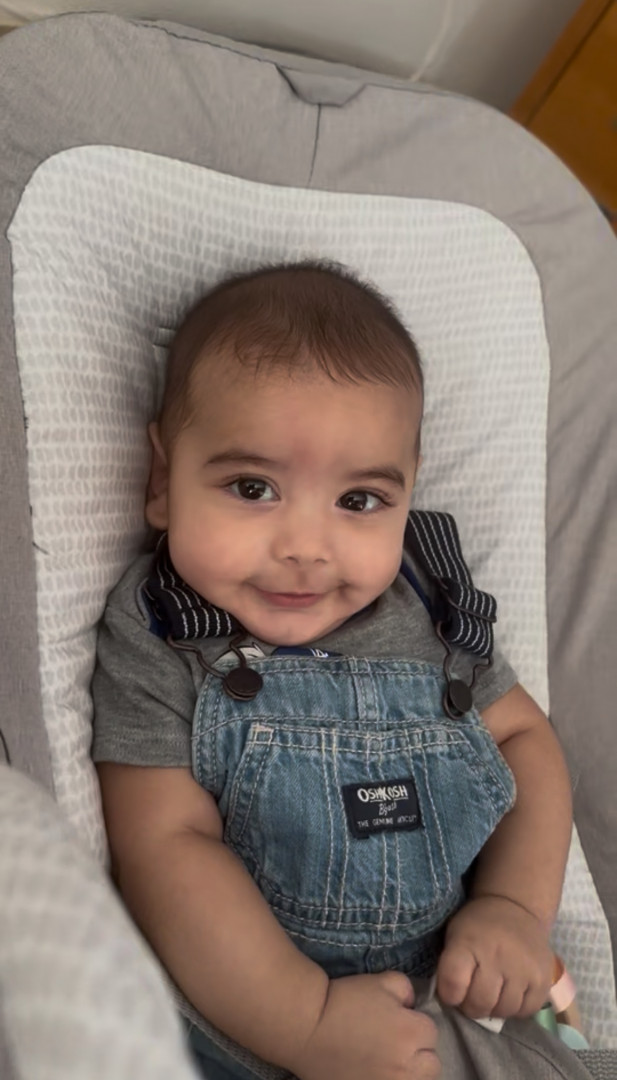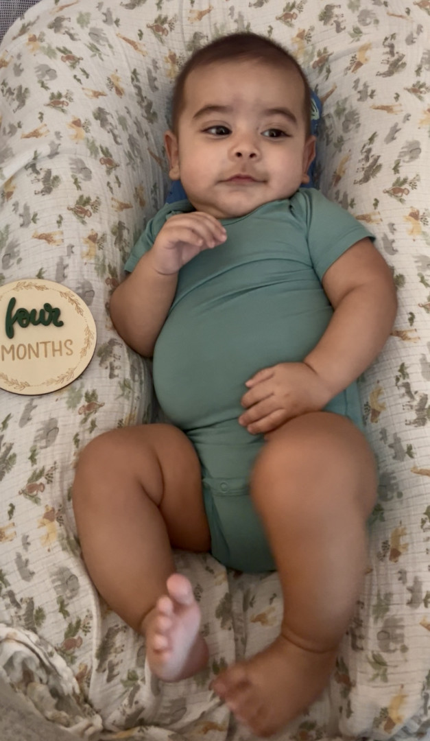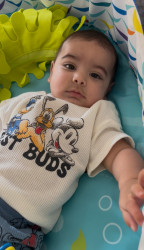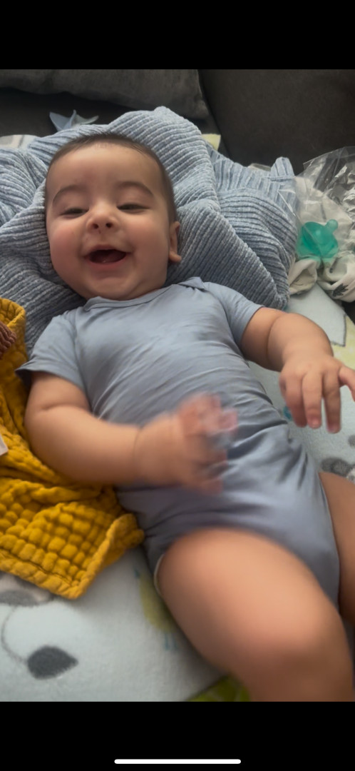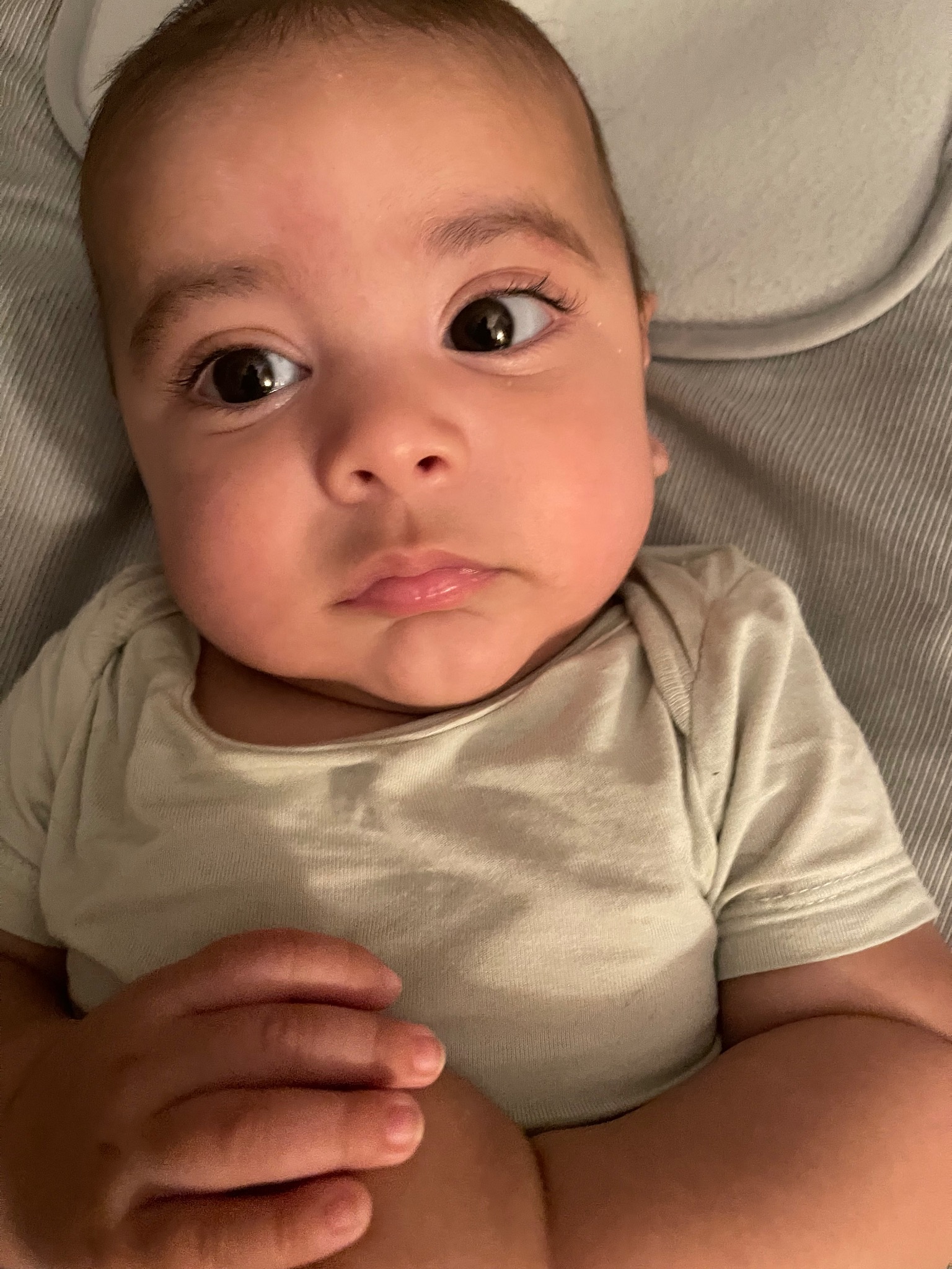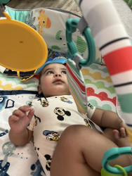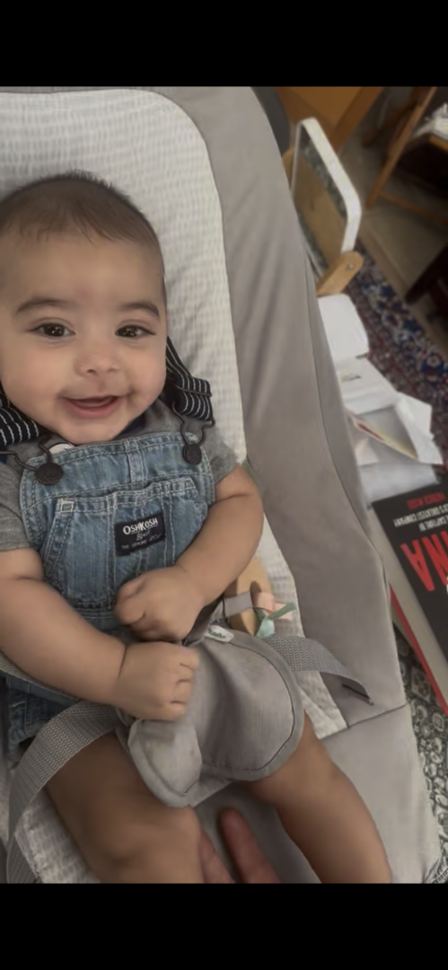 What are Amir's favorite activities?At 4 months, Amir loves tummy time and practicing his rolls, he kicks with so much energy you’d think he’s already training for sports! He’s fascinated by bright colors and little animal pictures, loves discovering his hands, and “talks” and laughs as if he’s part of every conversation. Curious and full of joy, he’s ready to explore the world.
