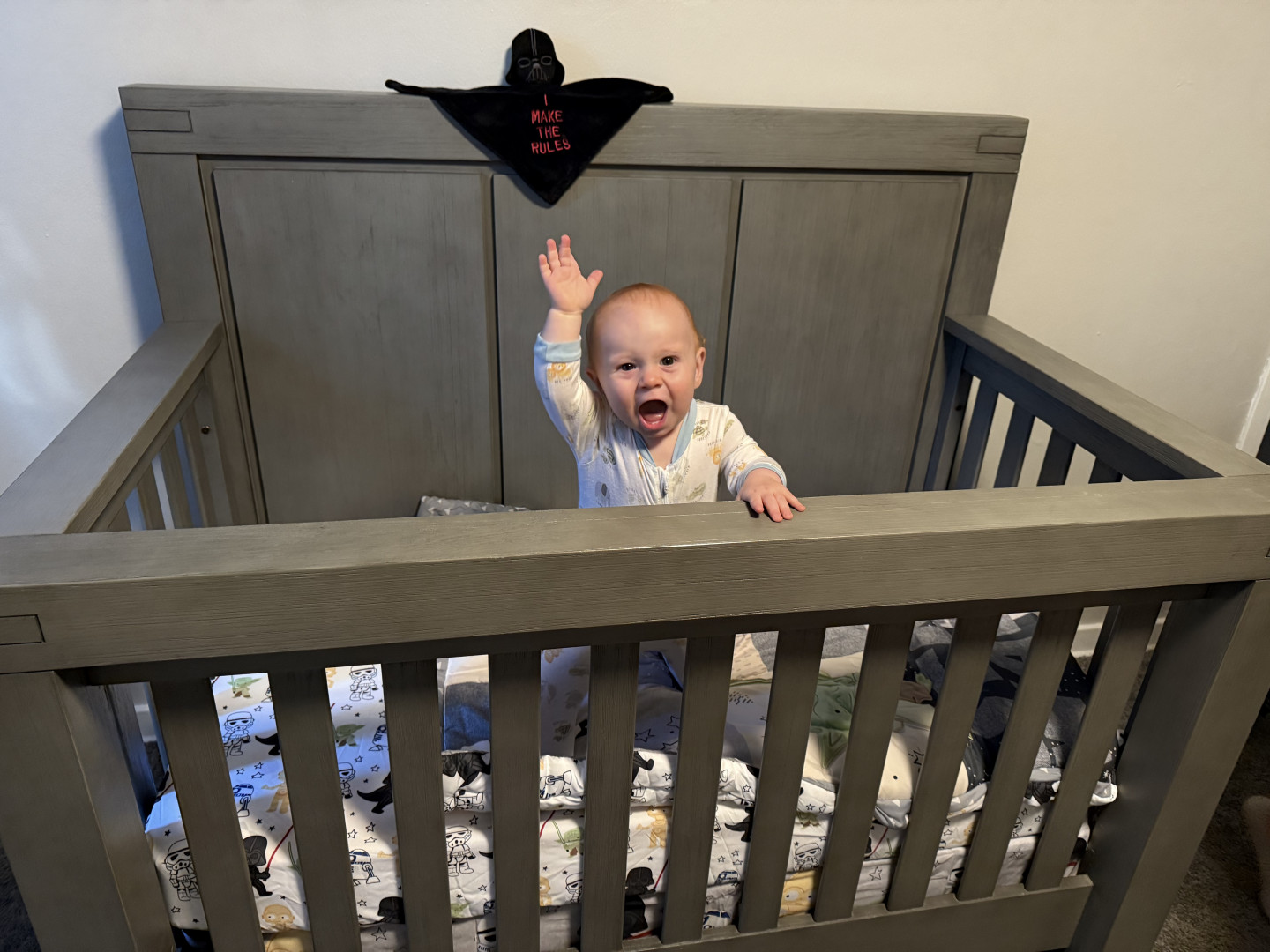 What are Anakin's favorite activities?His favorite activities consist of being chased around the house and jumping and dancing as much as possible. He loves when we put on music and does his own little version of twerking to the beat. I’ve found Elton John music videos to keep his interest more than any kids show. He loves chasing our dog Arlo around the house and getting his hands on anything that doesn’t belong to him. He also loves blowing raspberries on mom and making “wah wah” sounds 😆
