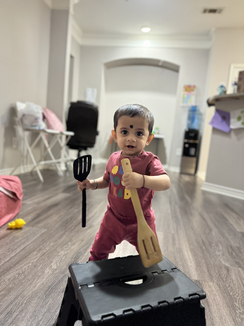 What are Anantviraj's favorite activities?He plays well both indoor and outdoor. He climbs everything. He never walks always runs. He likes to eat everything on his own.