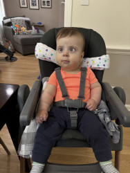 Angelo is the sweetest boy! Since day one, he loves to be loved and cuddled. He has found his smile, makes his own special sounds in trying to communicate, and is generally happy and calm. He has to work so hard to do things that most typical babies do naturally, yet he remains determined and on a progressive path!