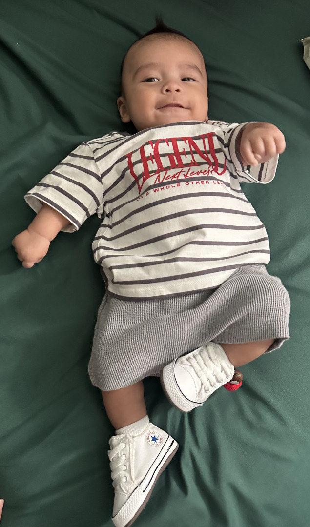 Ario is such a happy baby! He’s always smiling and laughing. He can also be very serious/curious when he’s discovered something new. We call him our “ chill guy” cause anywhere we are /go he’s just hanging out with us and taking everything in.