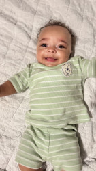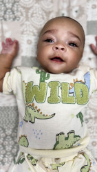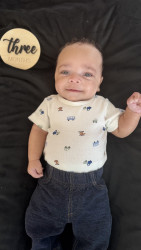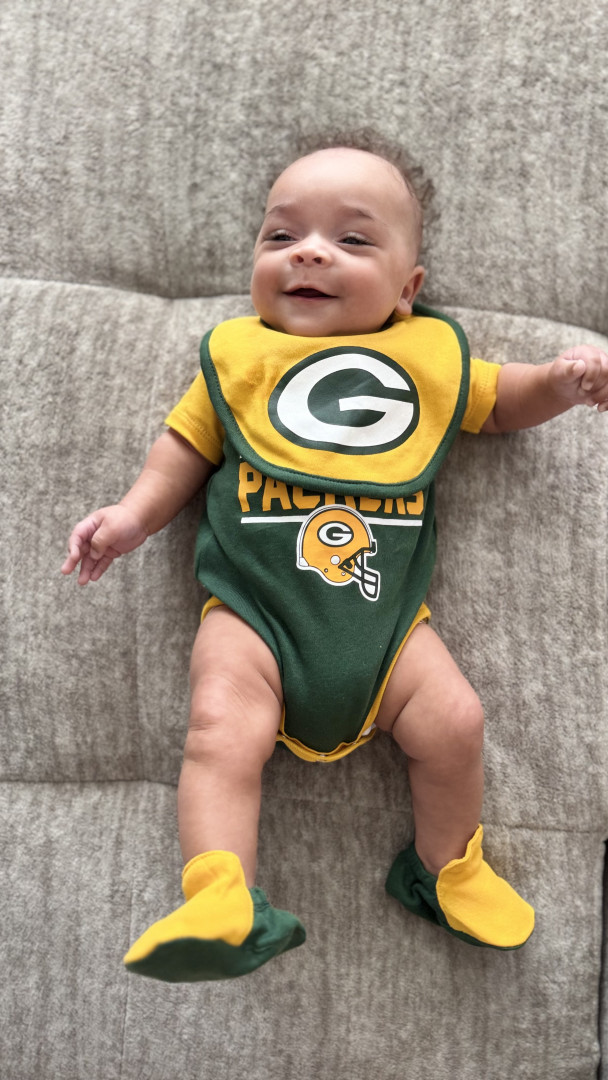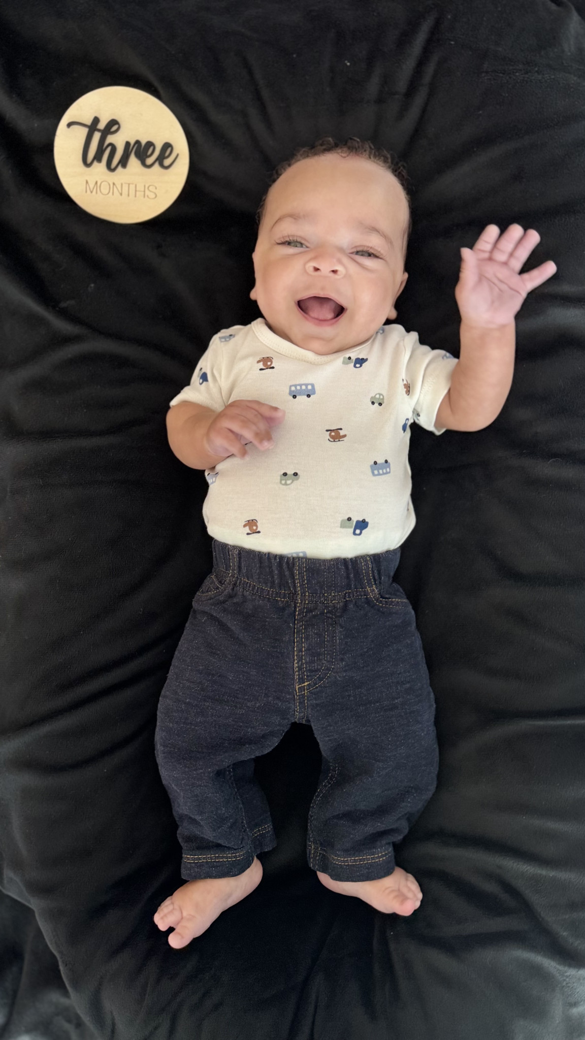 Arlo’s personality is pure sunshine—he’s a joyful, giggly baby who loves to connect with everyone around him. He’s curious, playful, and always ready to “talk” during FaceTime or while being sung to. Whether he’s rolling for daddy, yanking on a beard, or flashing his sweet smile, Arlo’s charm and happy spirit brighten every moment.