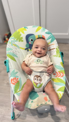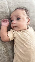 What are Arlo's favorite activities?Arlo’s favorite activities are the sweetest mix of playful and social. He loves tummy time and has gotten so good at it, even rolling over—though he saves that special trick just for daddy. One of his funniest hobbies is grabbing and tugging on daddy’s beard with all his strength. He lights up when being sung to and he absolutely adores FaceTiming, where he’ll “chat” and giggle with anyone who calls.