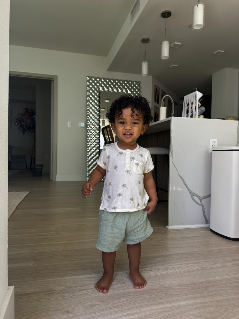 Arlo is a super happy yet determined baby. He loves to climb and he also loves to dance and listen to music. His favorite toys are instruments like the drum and the xylophone.