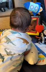 What are Asher's favorite activities?Asher loves tummy time and strolls in the carrier. Nothing gets his attention more that learning to use his voice right now and practicing sounds with his mom and dad!
