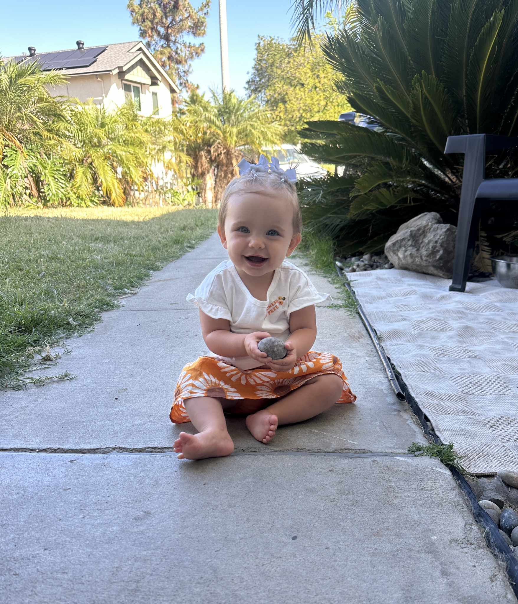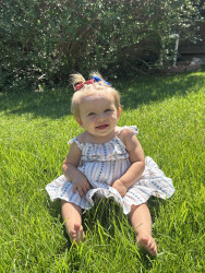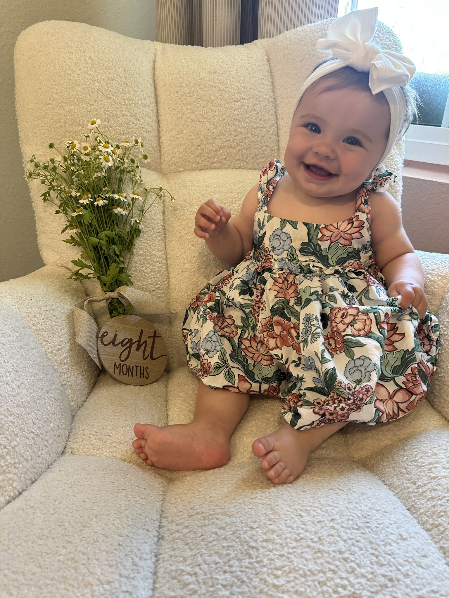 Our daughter lights up any room with her big toothless smile and her sweet outgoing personality.