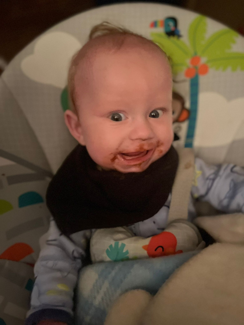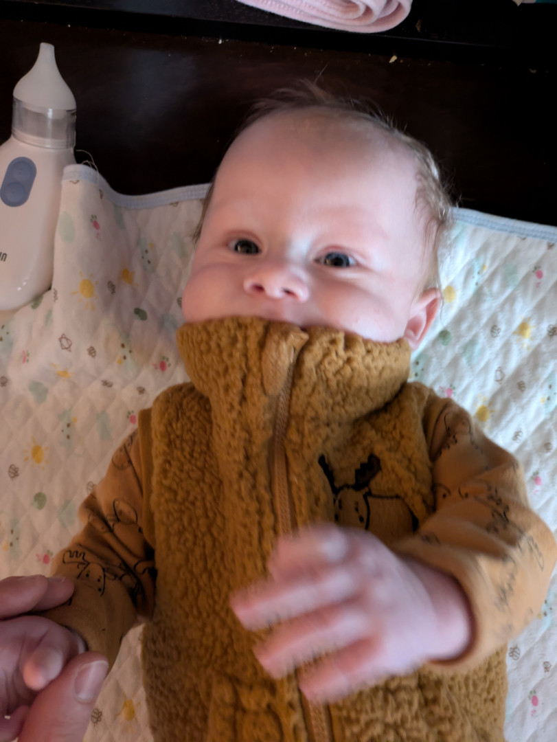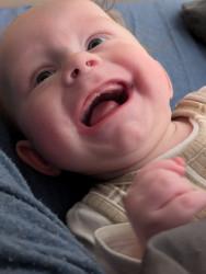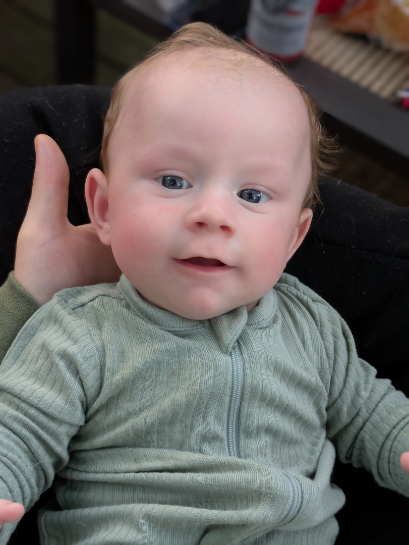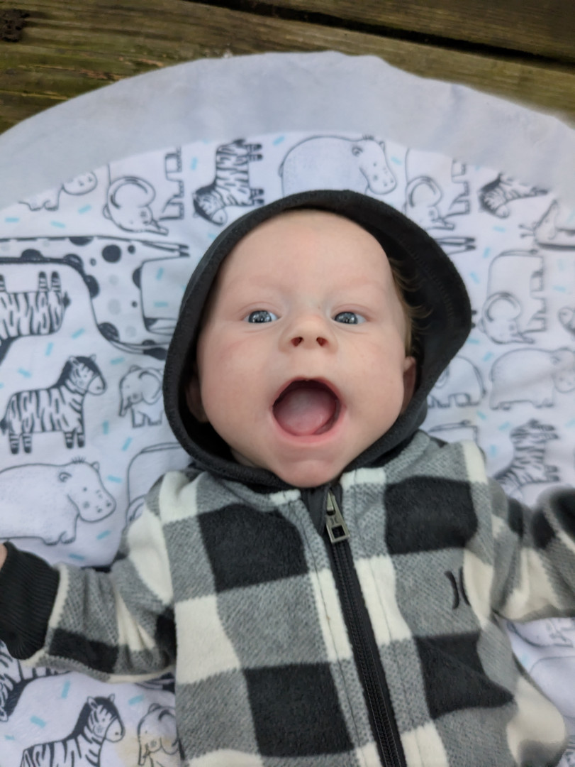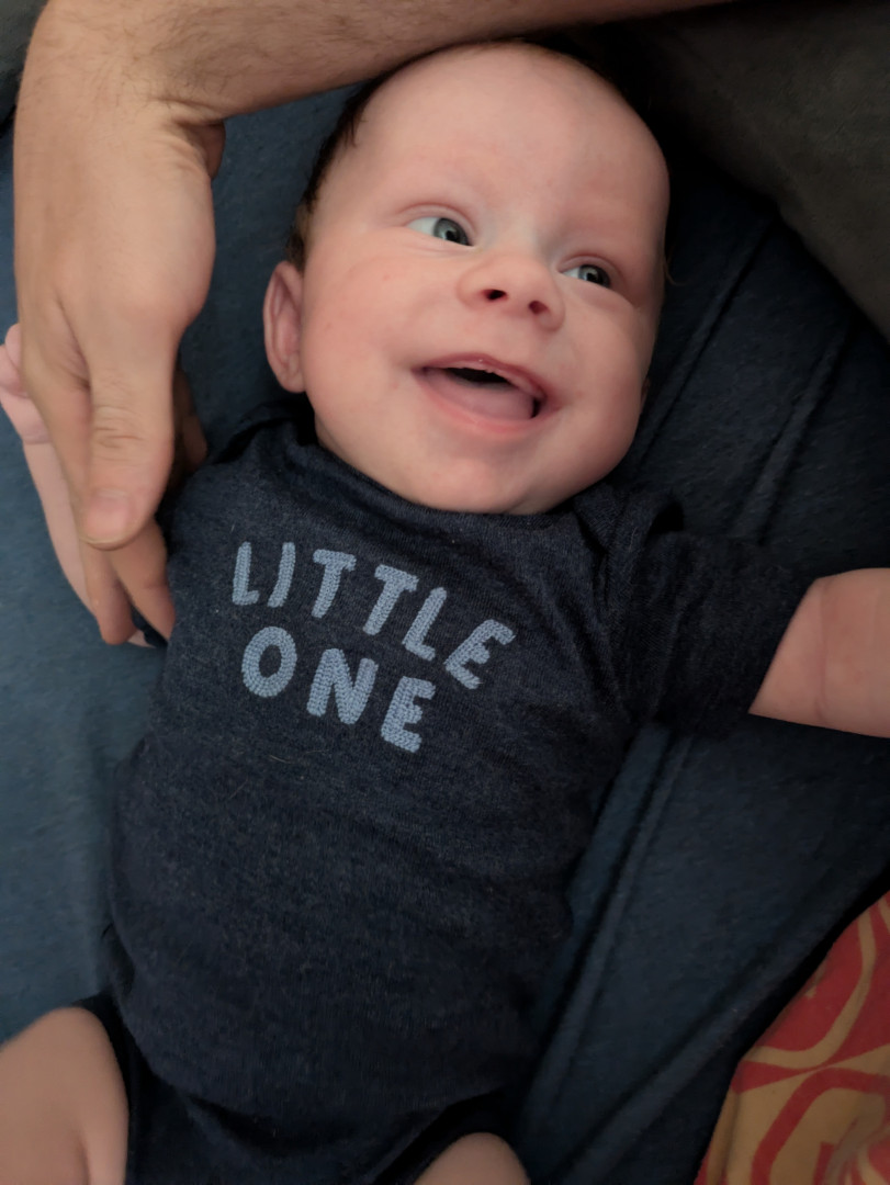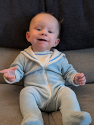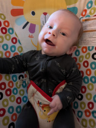 Atlas is all smiles and laughs these days! He only started laughing a few weeks ago and giggles at just about everything his parents do! Since birth he has been very brave and rarely cries unless tired or hungry! That baby could probably sleep through a train going by his bed. He loves his parents very much and always gives a big gummy smile when he sees one of us for the first time of the day! We have been very lucky to have such an expressive and calm baby!