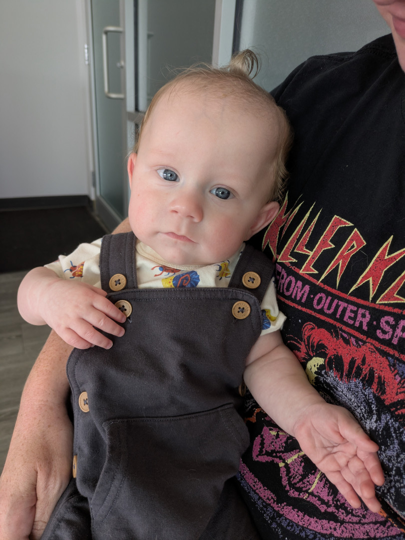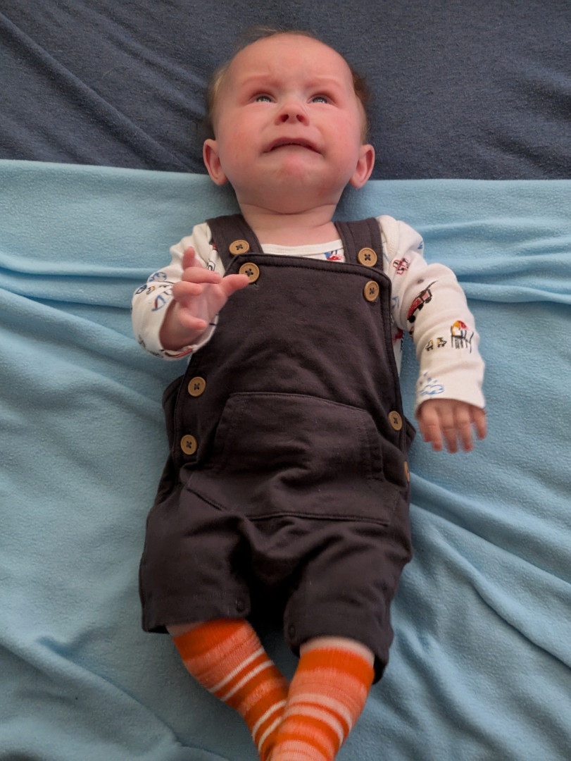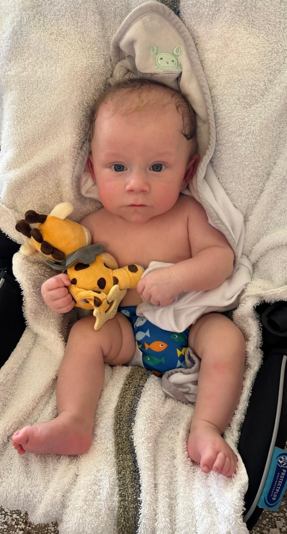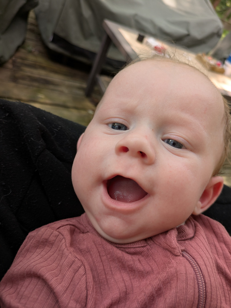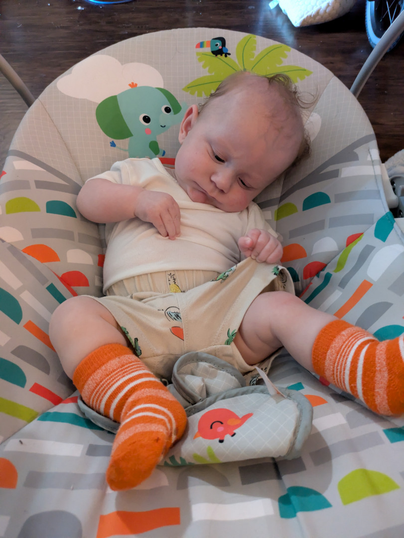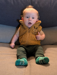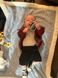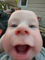 Atlas is all smiles and laughs these days! He only started laughing a few weeks ago and giggles at just about everything his parents do! Since birth he has been very brave and rarely cries unless tired or hungry! That baby could probably sleep through a train going by his bed. He loves his parents very much and always gives a big gummy smile when he sees one of us for the first time of the day! We have been very lucky to have such an expressive and calm baby!