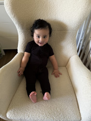What are Atlas's favorite activities?At 7 months, my son’s favorite things are so much fun to watch. He enjoys grabbing and chewing on his toys, especially the ones that make sounds. He loves rolling around, scoot, and practice sitting up, he’s so determined to move and explore. He lights up when he hears music or songs, and he’s fascinated by watching people’s faces and reactions.