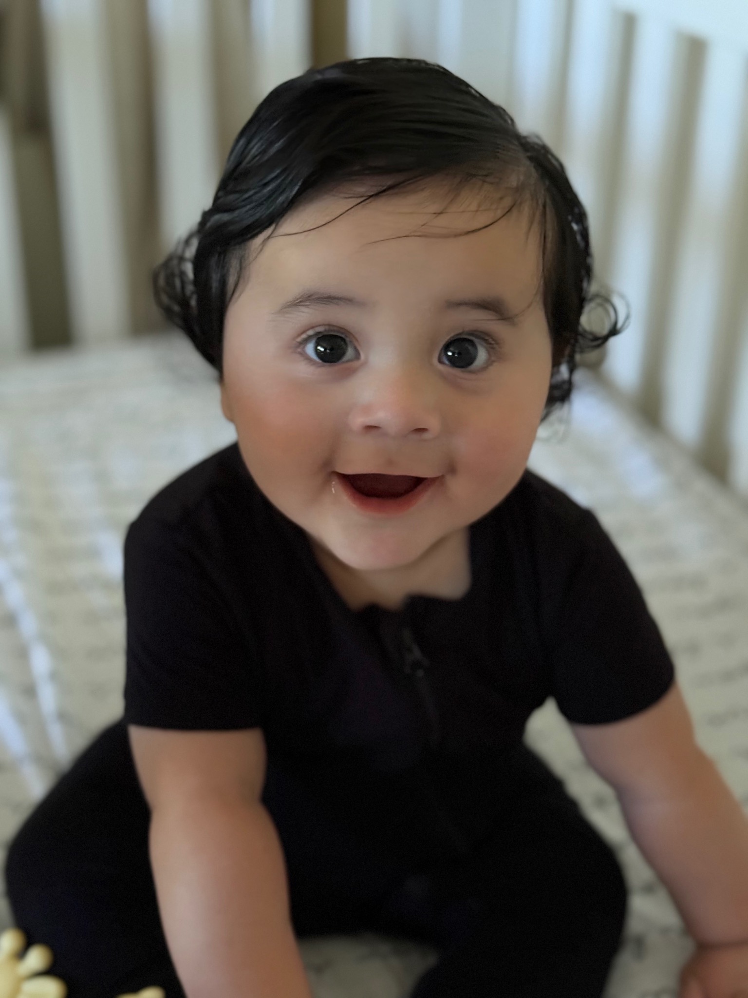 At 7 months, my son’s personality is really starting to show. He’s such a curious little soul, always reaching for new things and studying the world around him with wide eyes. He loves to laugh and babble, especially when someone is giving him attention, and his smile lights up the room.