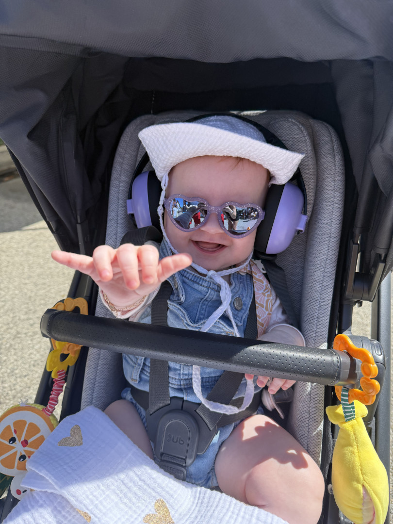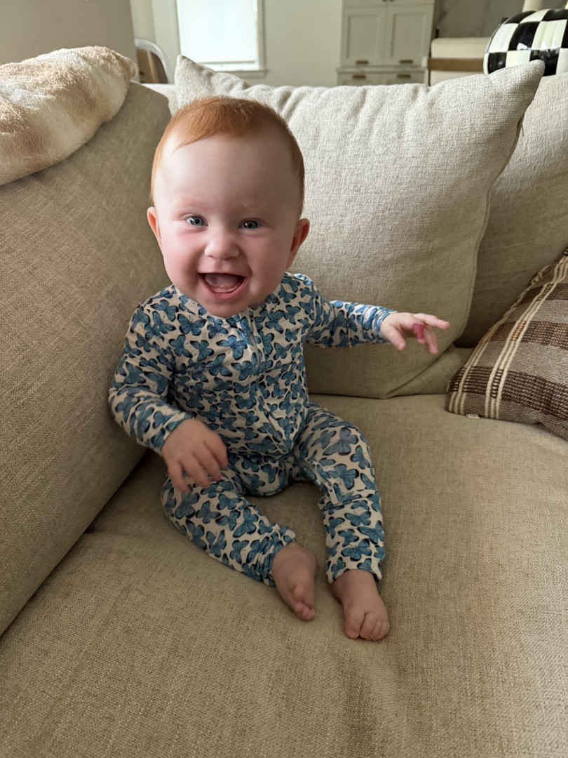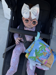 What are Aurora Jean's favorite activities?Aurora’s favorite things are kicking her feet, babbling and squealing (even at 3am), hanging in her Skip Hop, snuggling her dragon stuffed animal, watching every move her dog Kobe makes, dance parties with dad, mama cuddles, and watching videos of fish in the ocean!