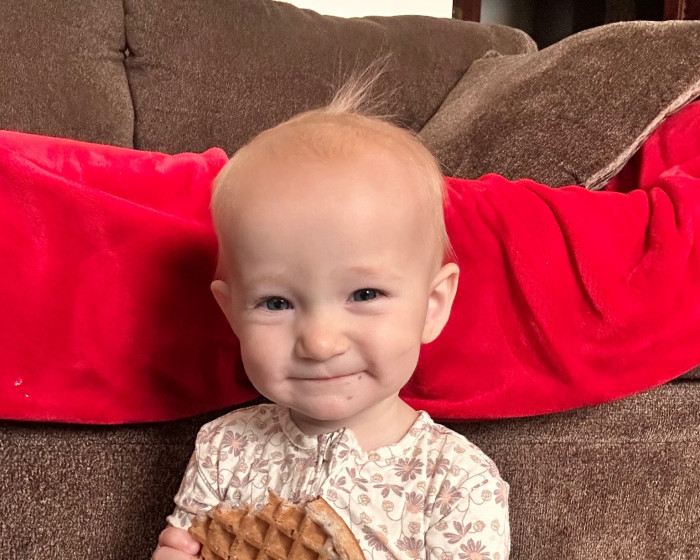 What are Aurora Schone's favorite activities?Eating lol, but what toddler doesn’t love a good snack? She’s a huge fan of Miss Rachel and Bluey. So she likes to have them playing in the background as she plays. She loves animals and anything to do with them so she’s often playing with any toy that involves an animal. She has been in physical therapy because she’s not walking yet, but don’t let that for you. She can still keep up with her siblings. She’s a very fast crawler.