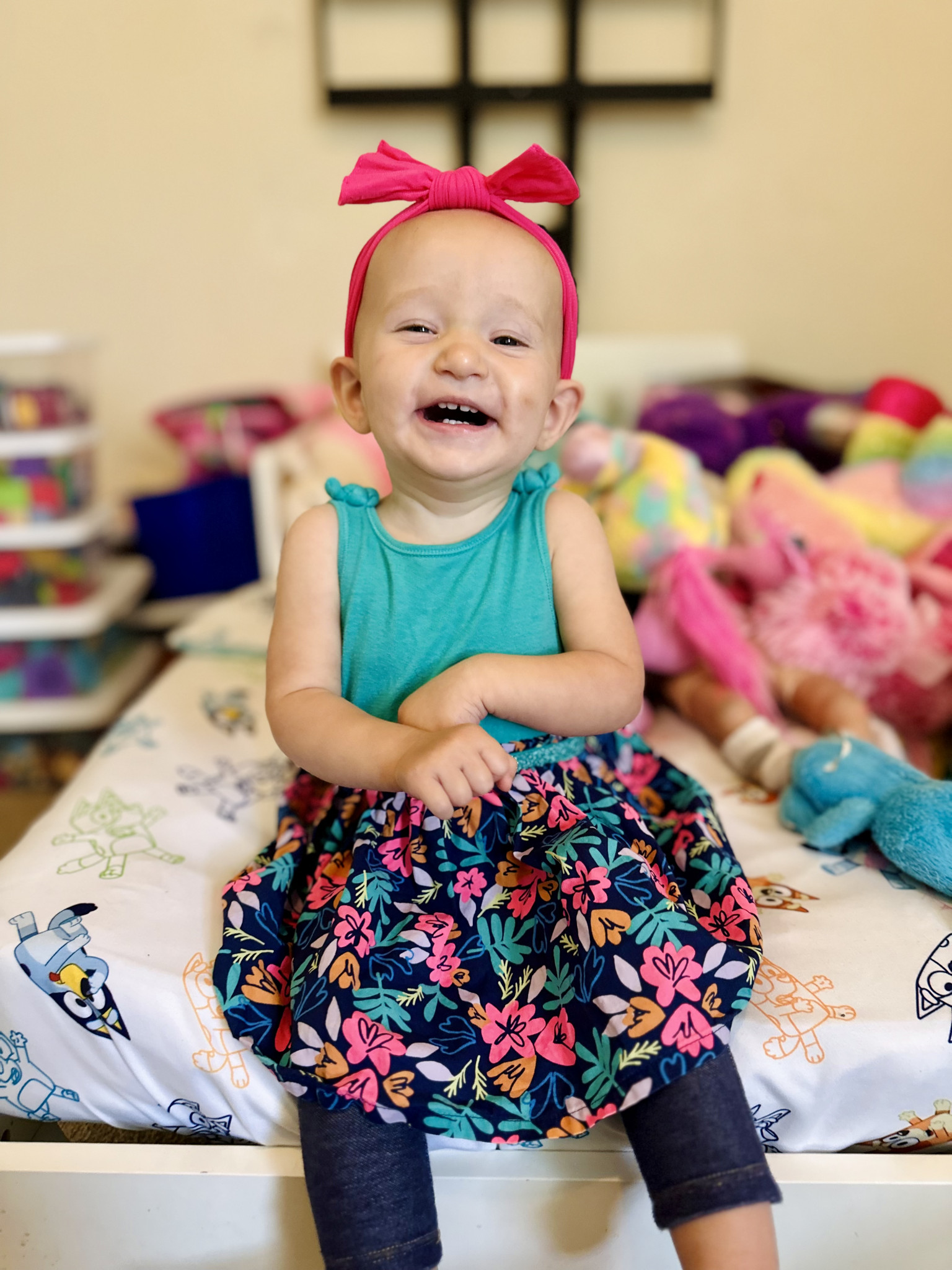 I like to call her my little sour patch kid. Because she can be the sweetest little thing or the sassiest little girl. She is very independent and very strong willed. Also so so so affectionate. She has such a goofy funny little personality such a silly girl.