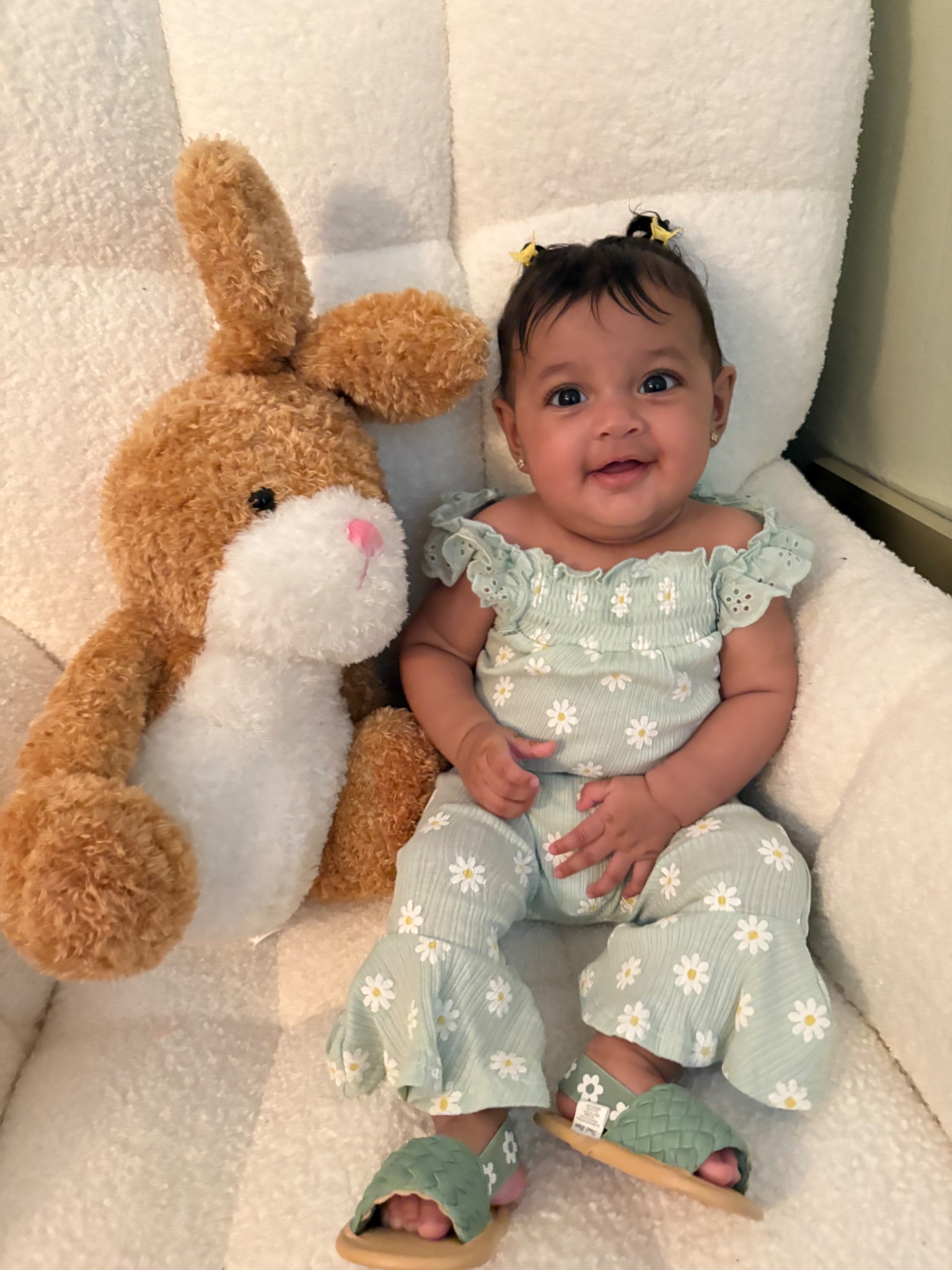 Ayliani has a very strong character she shows her feelings through facial expressions. She usually smiles and is very friendly living in NYC she will smile at everyone but she is a hungry baby; like snickers she isn’t her when she is hungry.
