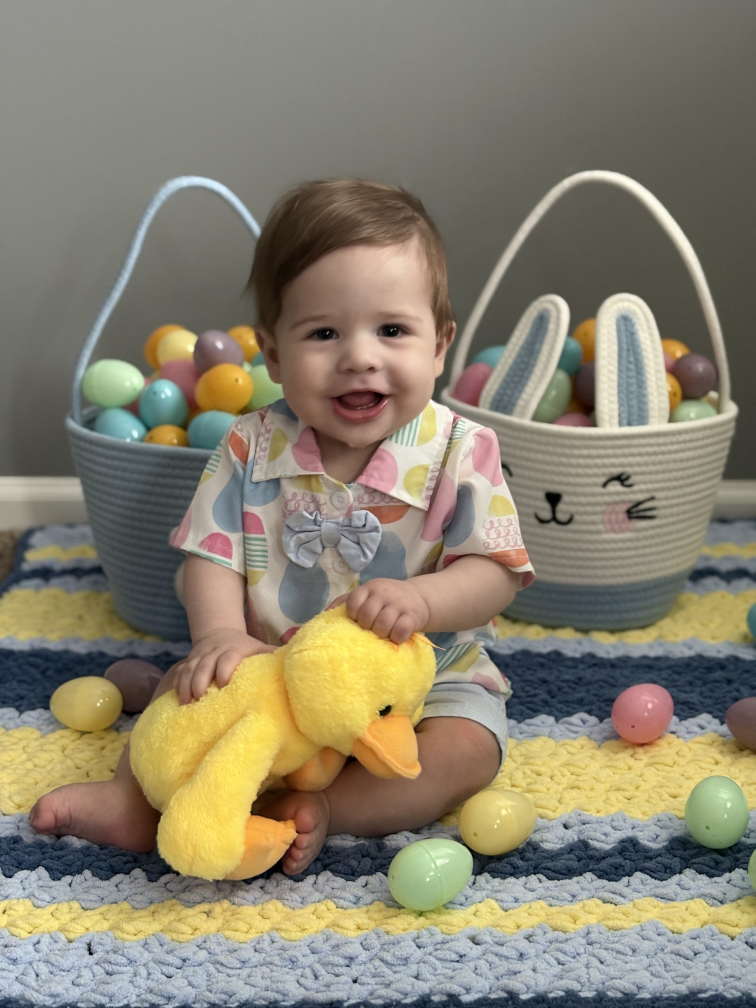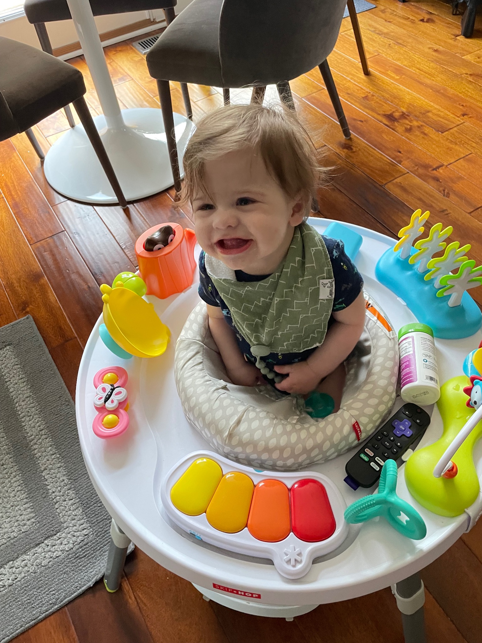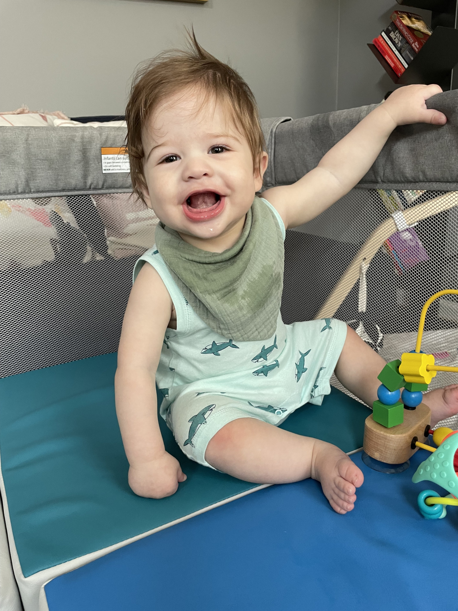 Inquisitive since day one, nothing gets past this boy. He loves to investigate how things work, and will study the smallest screw on a toy and every button or light switch he encounters. He loves to smile and spend time with mommy and daddy playing, napping, crawling and climbing!