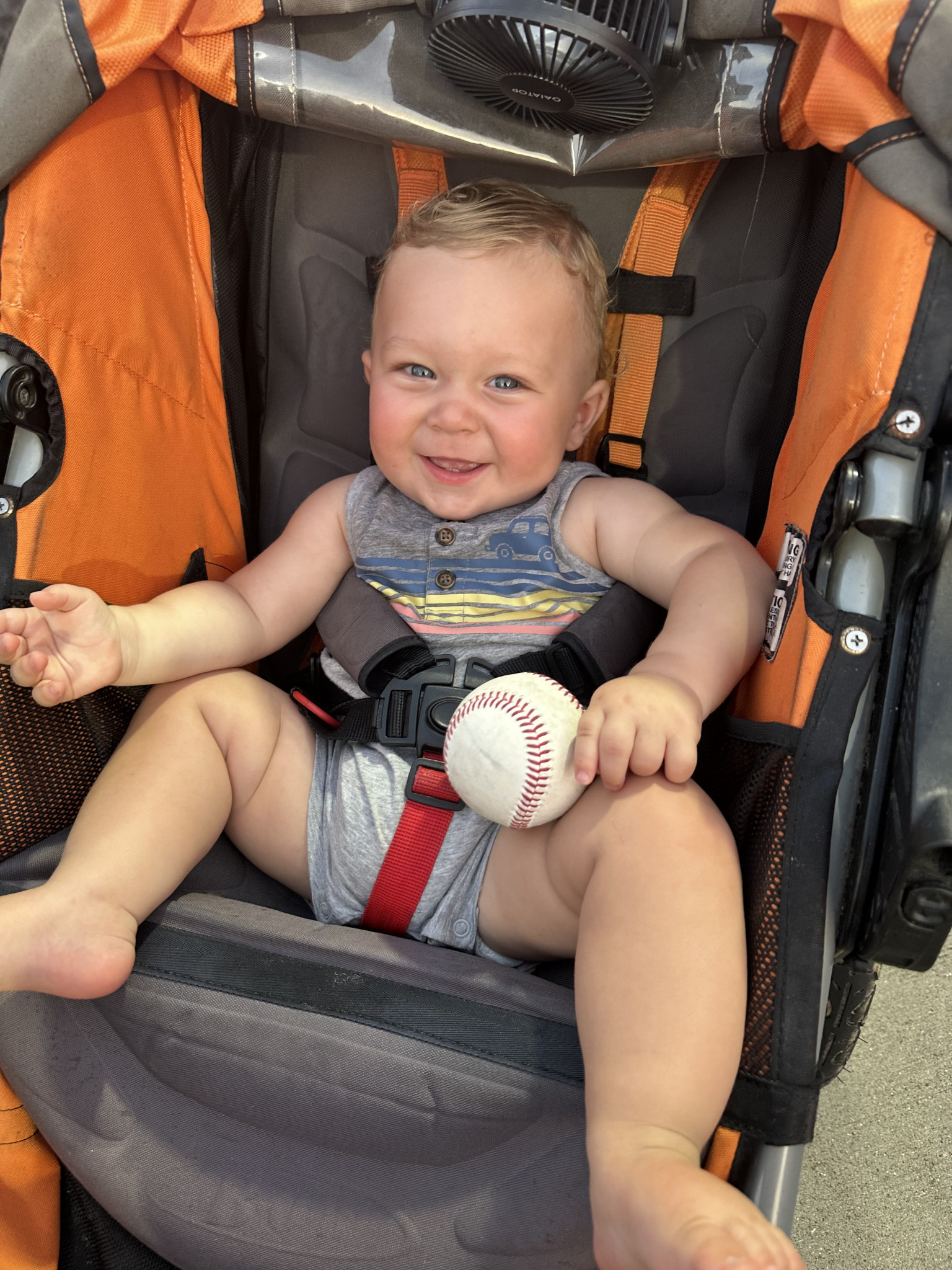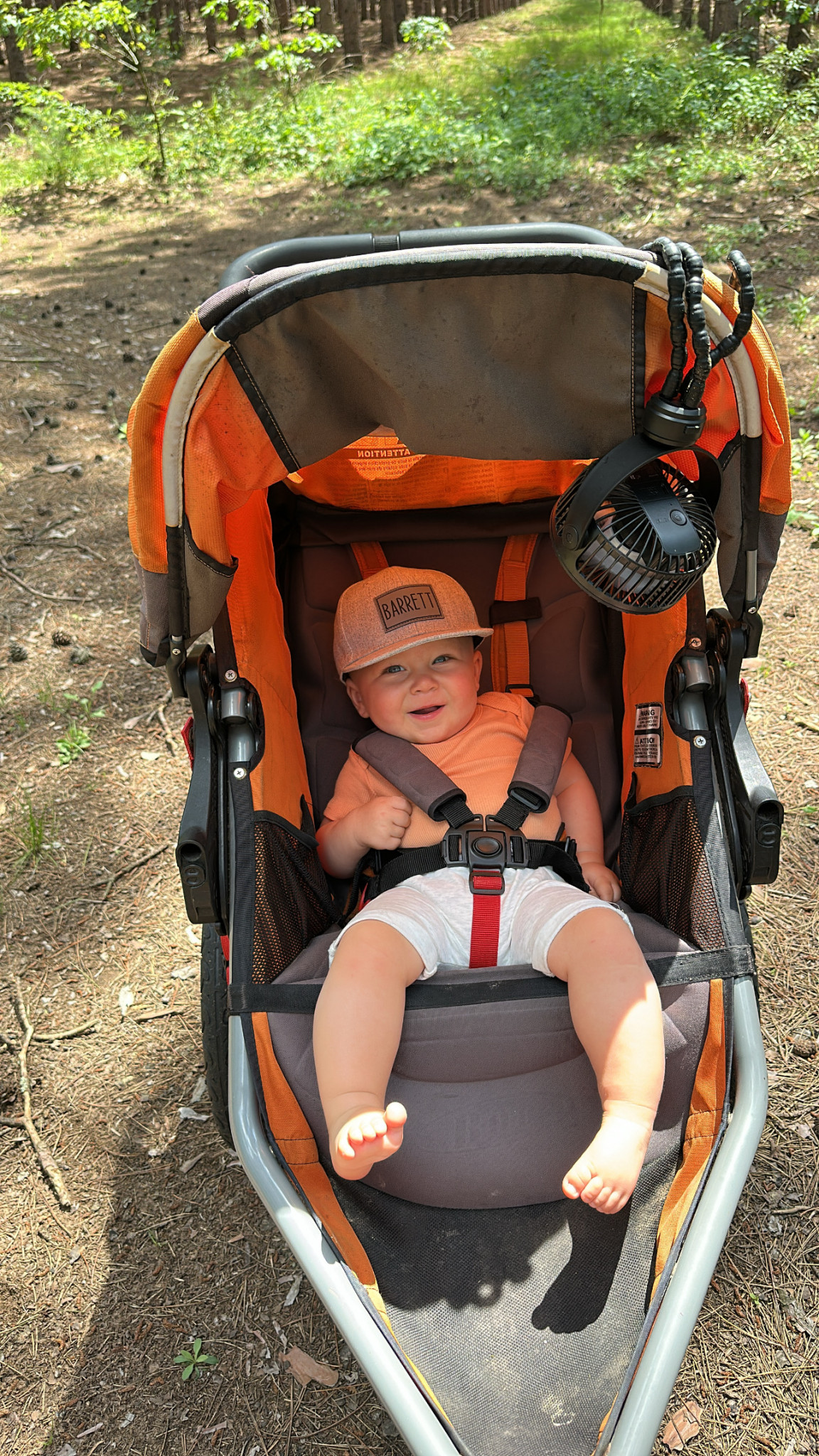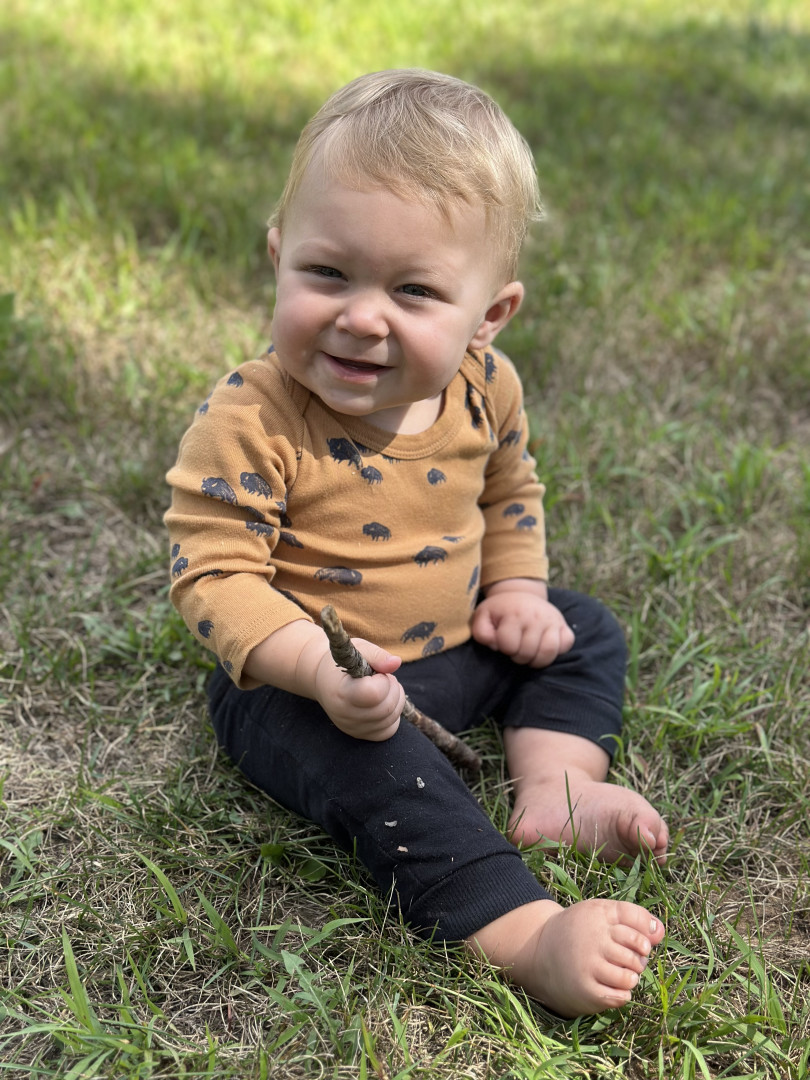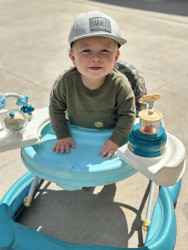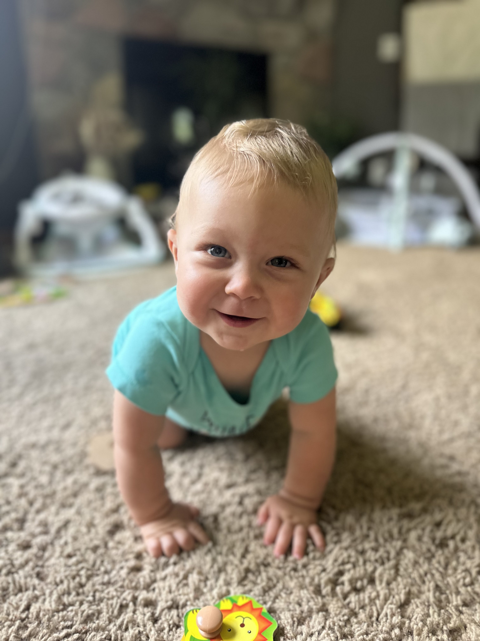 What are Barrett's favorite activities?Crawling wherever we’ll let him, going for walks in the stroller, walking in his walker, bath time, being outside