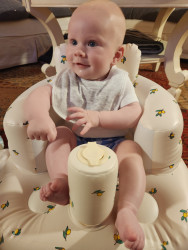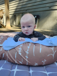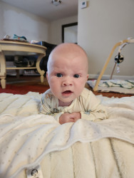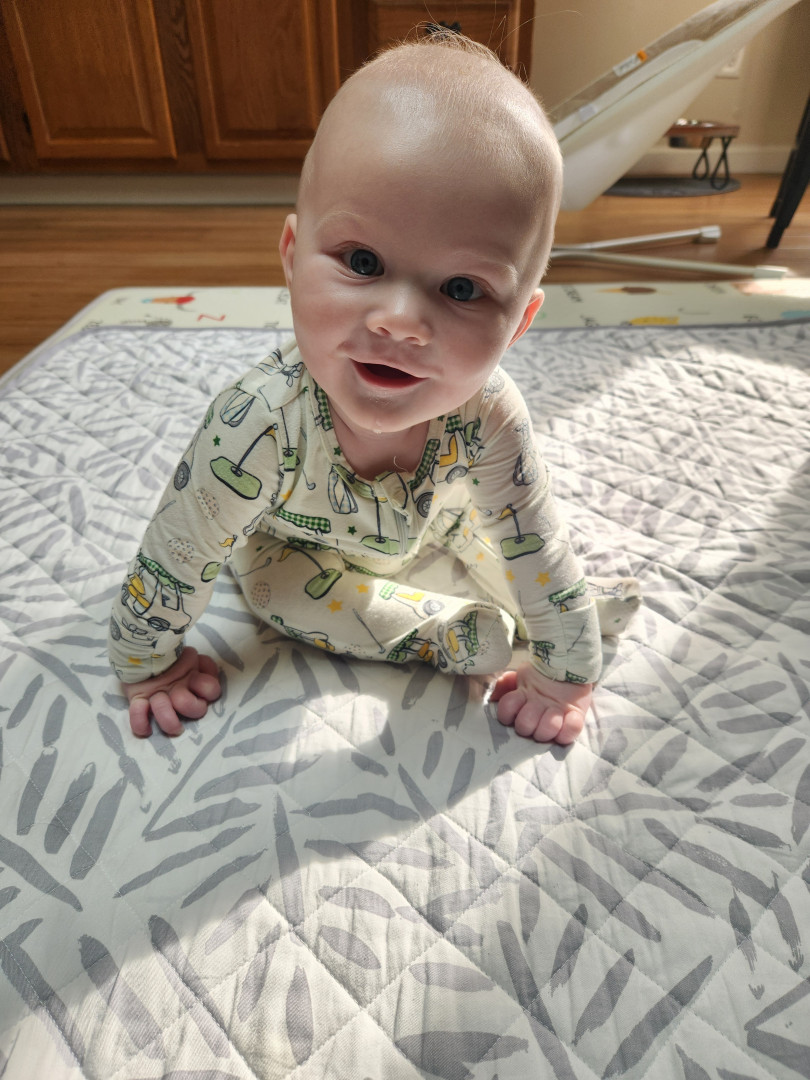 He's such a charmer and he's very intrigued by what people have to say and often looks like he's judging you in the cutest/best way possible. 😊 He's serious at times learning the world around him - especially when you try to take a picture of him 📸 , but his smiles/ giggles melt your heart. 💙