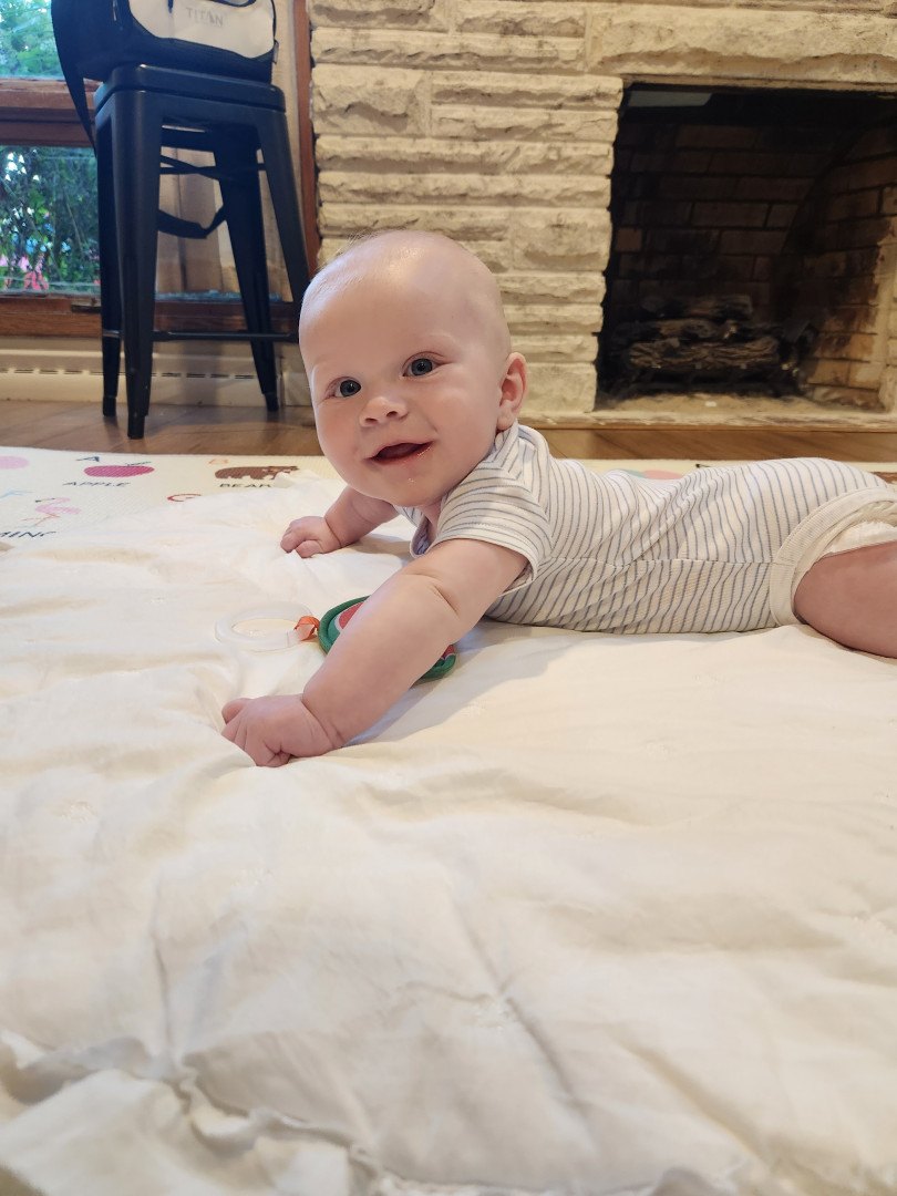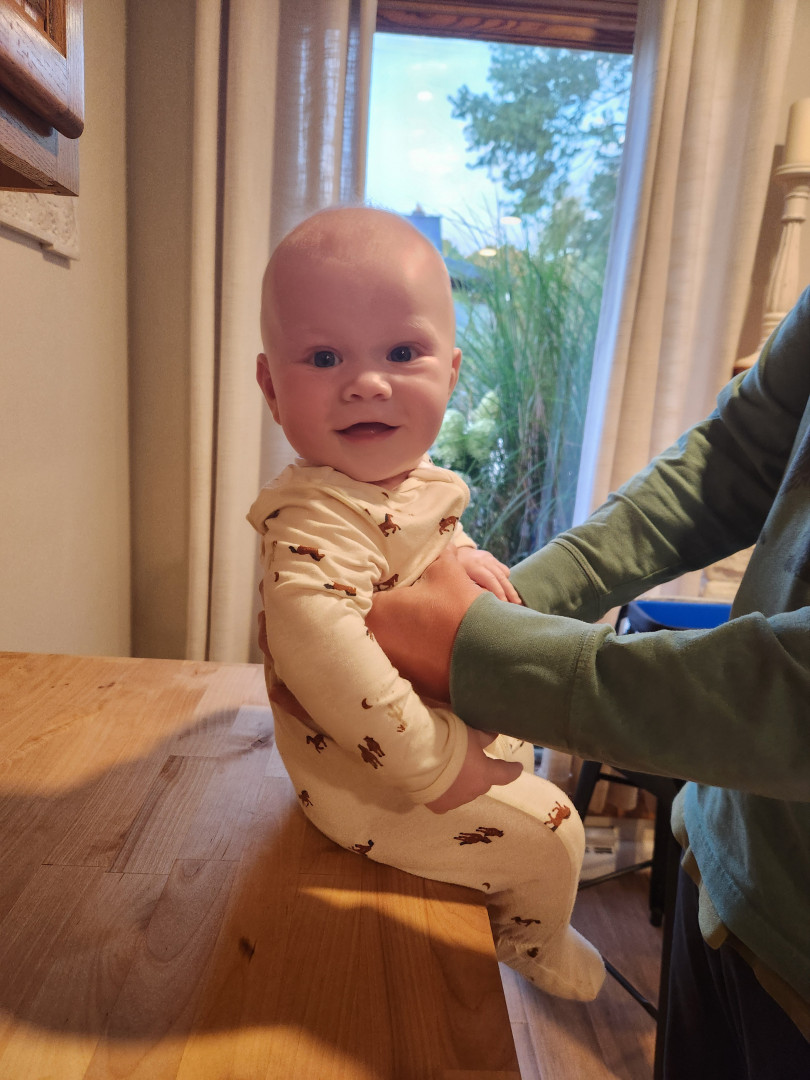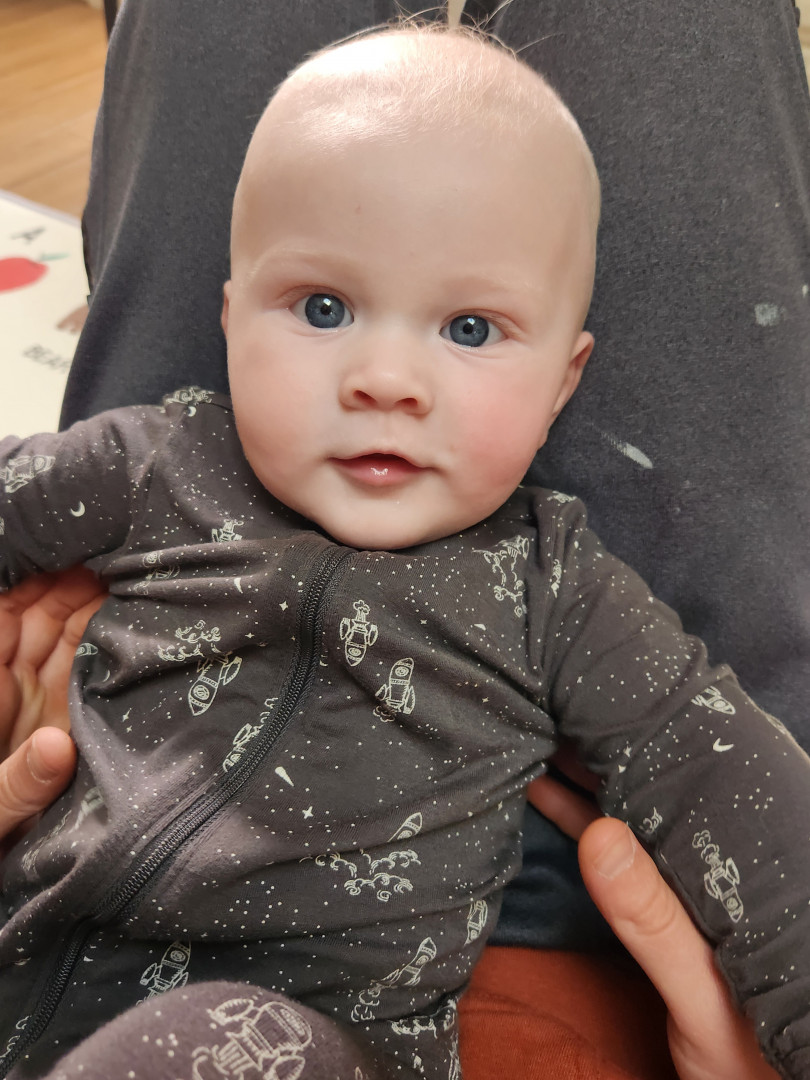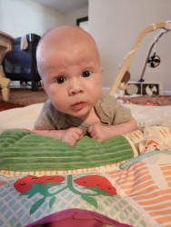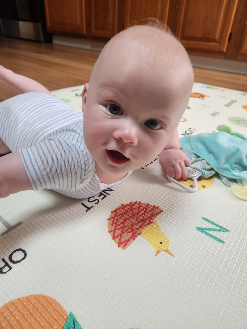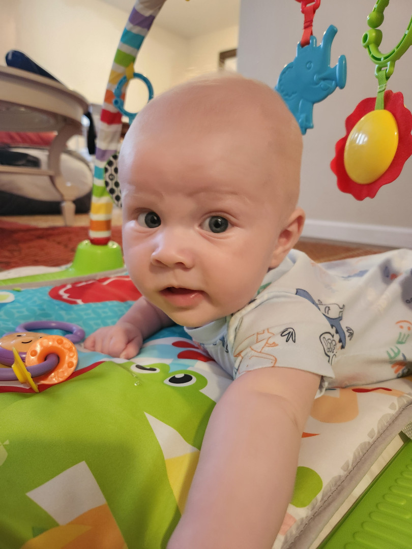 What are Barrett Holesko's favorite activities?Barrett's current favorite activities include, talking with his mema - aka great grandma (he lights up every time he sees her 😊), chewing on everything, finding his voice - like he's a dinosaur 🦕, tummy time, and of course eating. 🍼