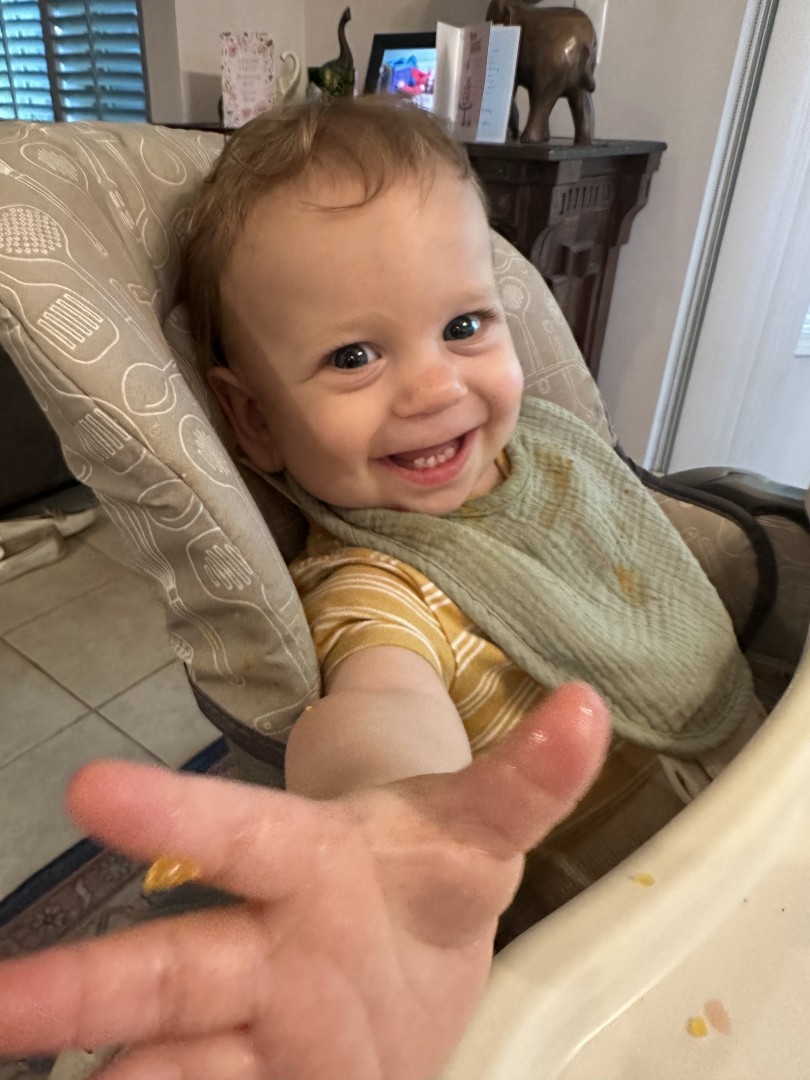 Beaux is such an easygoing fun-loving baby. He smiles and laughs easily. A little explorer, he is usually on the move! My husband and I love making him laugh and it’s not hard to do. Meal times are our favorite goofy Beaux time and such a joy as he tries new foods. Mama hopes he will be her sous chef when he’s a little older!