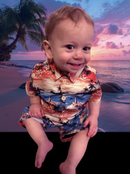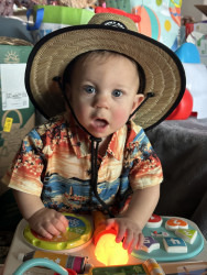 What are Beaux Busch's favorite activities?Beaux loves “flying!” Daddy hoists him up on his shoulder horizontally and flies him around to the Superman theme to much laughter. He also loves to play games where he is surprised with a peek a boo or funny sound. When it comes to playing, he can’t get enough of his music making toys like drums and even a turn table set. We hope he has his dad’s gift for music. He loves listening to his dad play guitar!