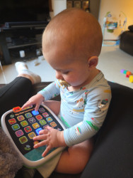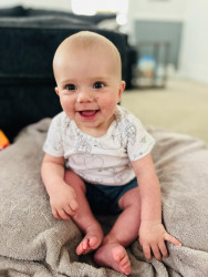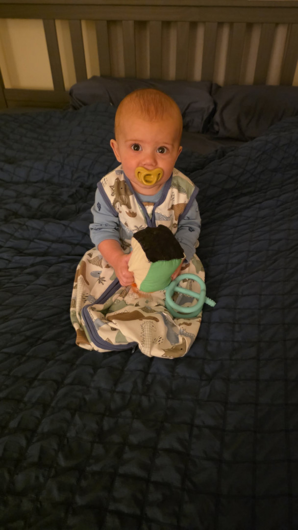 What are Beckett's favorite activities?Bath time is one of his favorite parts of the day — all giggles and splashes. And mealtime? A new adventure every day! He’s so open to trying new foods, and you can almost see the wheels turning in his little mind as he tastes, explores, and learns. One of his coziest joys is listening to us read him books. He'll settle in and focus on the pages, captivated by the rhythm of our voices and the colors and pictures dancing before him. Each day is a new adventure.