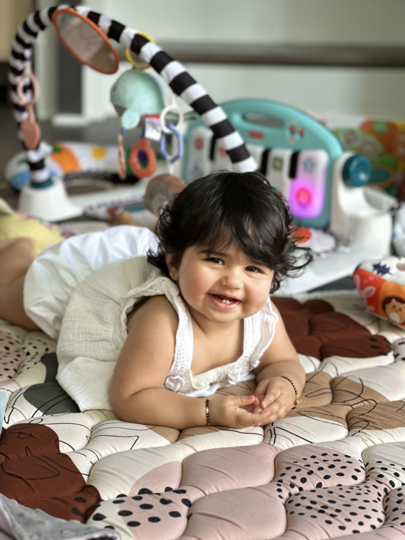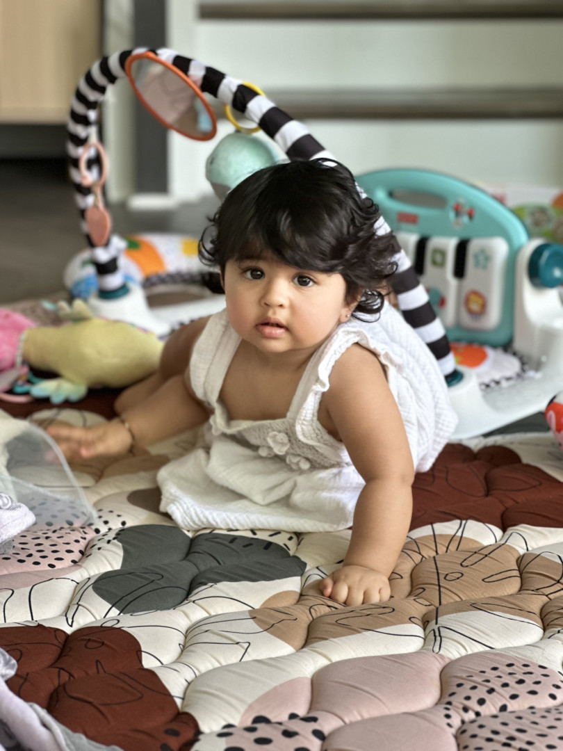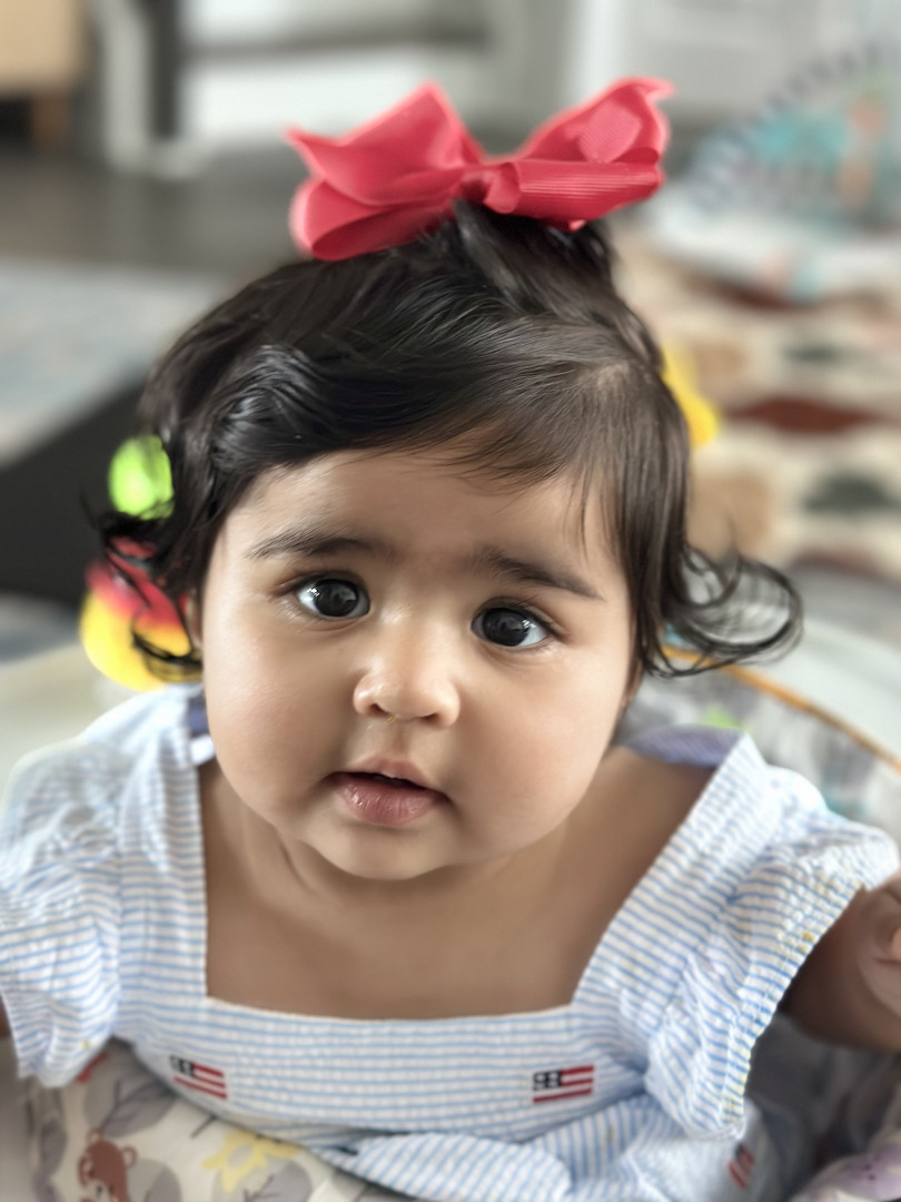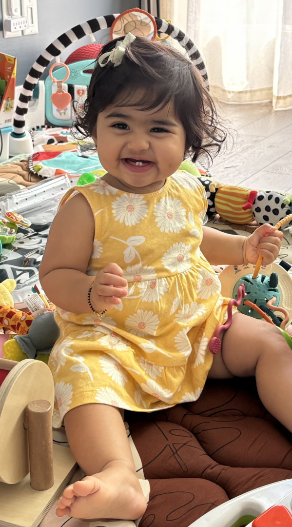 She’s a radiant little soul - charming, curious, and joyfully aware of her surroundings. Her smile lights up every moment, and her love for nature and calmness reflects a gentle wisdom. Confident and particular, she knows what she wants and embraces each day with giggles and grace. Truly the kind of baby who makes the world feel softer just by being in it.