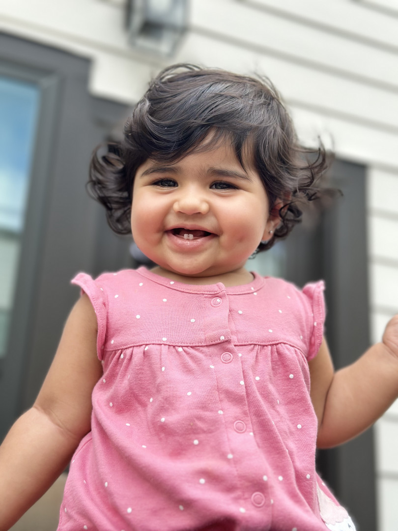 She melts hearts with her smile, dimple, and laugh - pure magic in baby form. She’s not just sweet, she’s unforgettable.