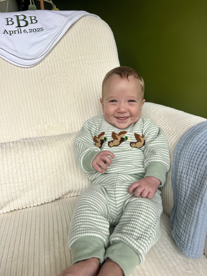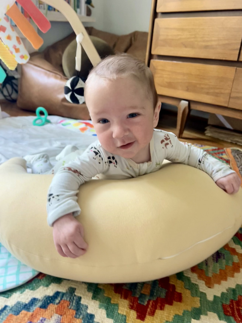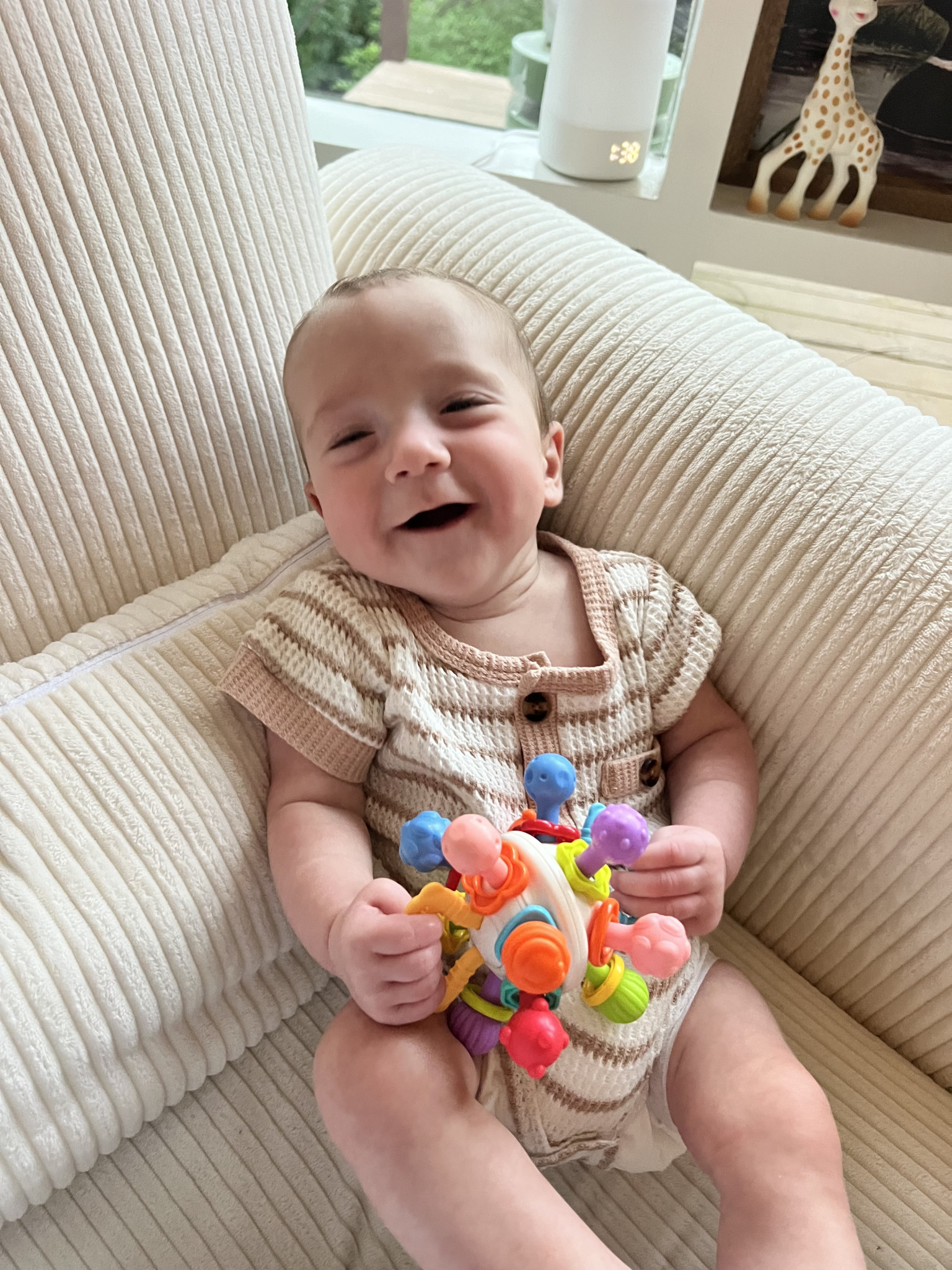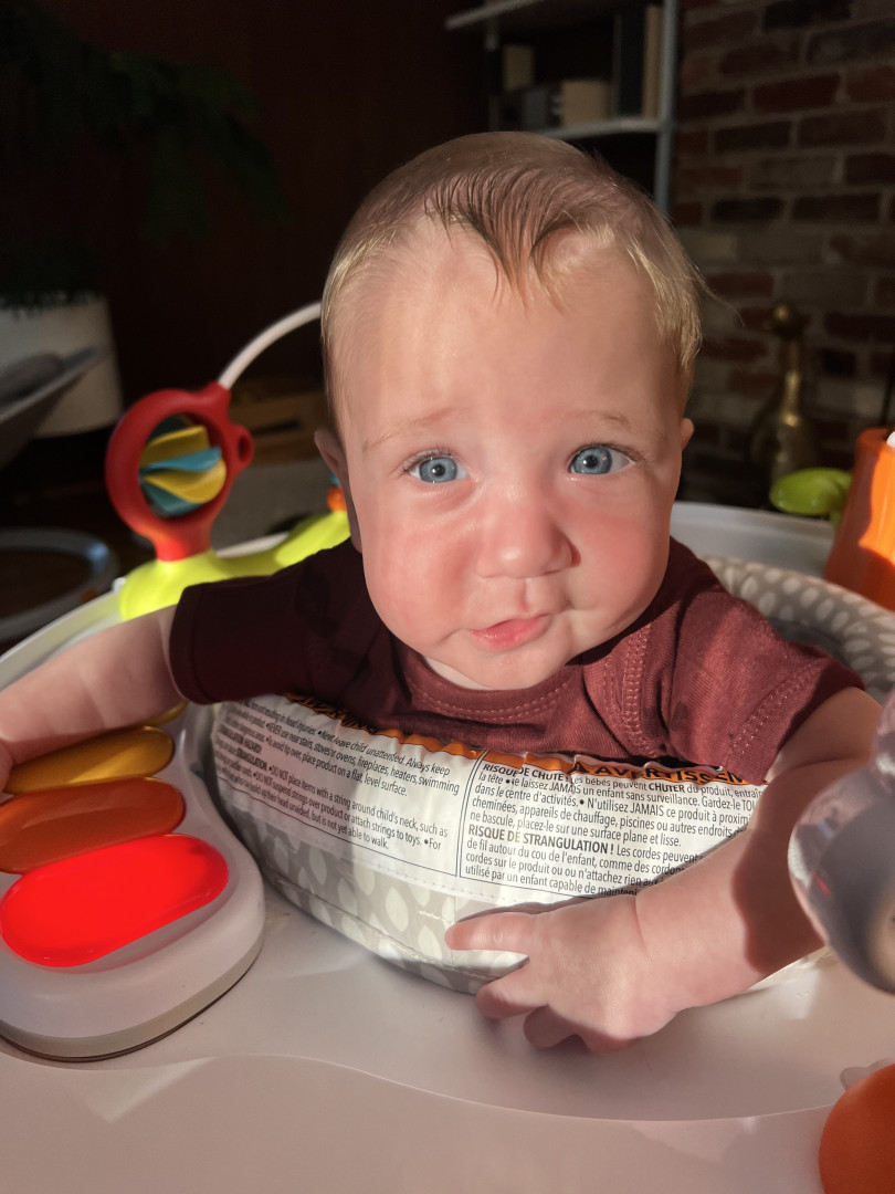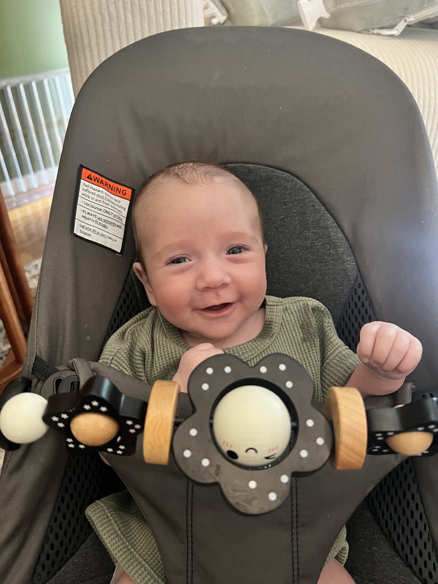 Blaise is the most relaxed baby I have ever met (totally not bias). He is so happy being held, doing tummy time, sitting in his chair. He has the most expressive reactions raising his eye brows, side smile smirks and belly laughs. He went through a lot to get here being born at 36 weeks and then in the NICU for 14 days before he could come home. He loves to blow bubbles and gasps so loudly before he giggles! He is such a happy baby and just goes with the flow. It’s hard not to smile around him!