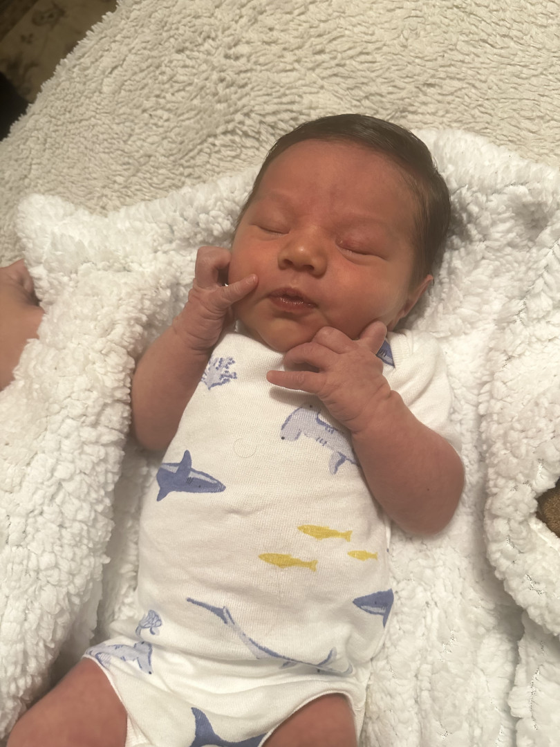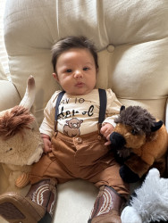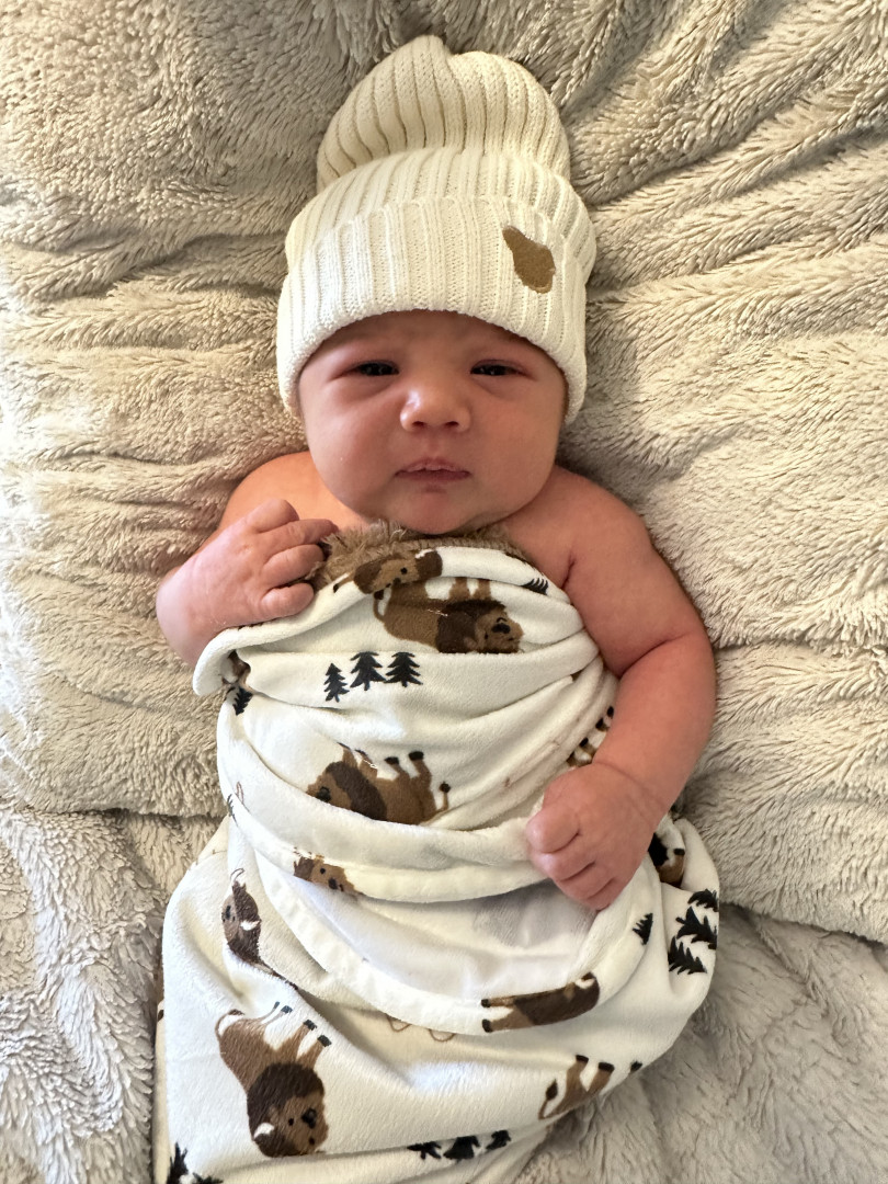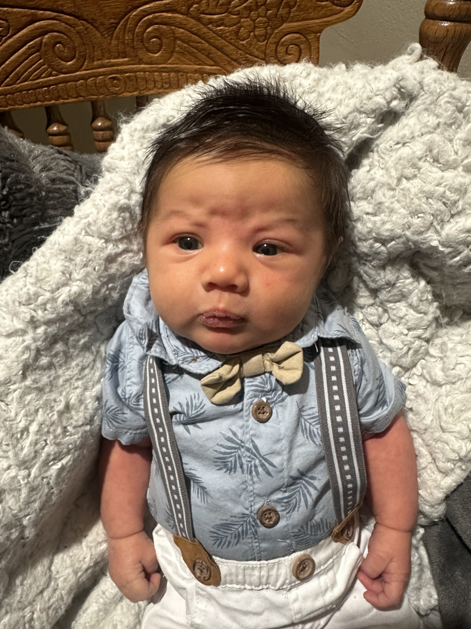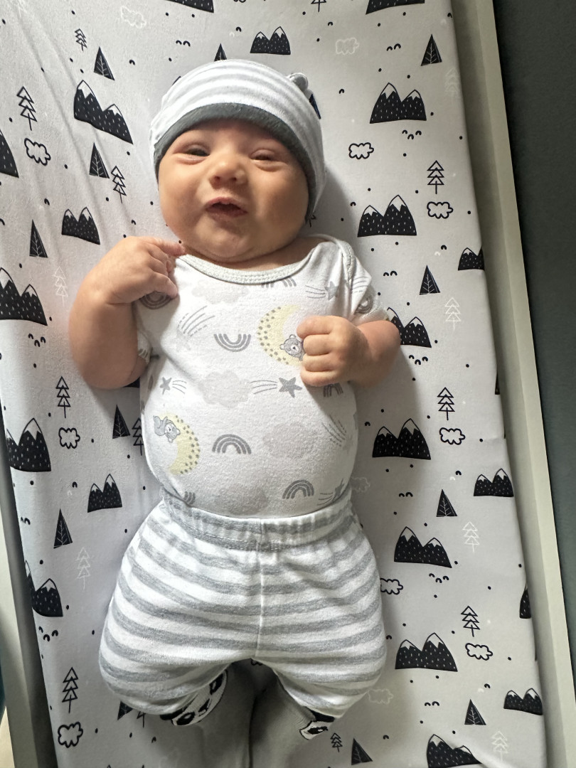 Braxton loves his swing, watching football with dad and is definitely a mamas boy. At just two months old, our baby is already beginning to shine with his own little personality. He’s incredibly expressive — his eyes light up with curiosity, and he’s starting to share his world with us through coos and tiny baby “conversations.”