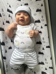 What are Braxton Liam Blair's favorite activities?Just at two months old, our baby already has a few favorite pastimes — and at the very top of the list is eating! He’s a growing champ, already weighing in at 12 lbs and he never misses a meal. Whether it’s a full bottle or a cozy nursing session, he takes his feeding time seriously (with the cutest little grunts and satisfied sighs). After a good feed, he loves to snuggle in close for cuddles, and he’s starting to enjoy tummy time lifting his head like he’s getting ready to take on the world.