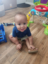 My impatient boy wanted to see the world 9 wks early and hasn't stopped since, he just soaks the world in and never stops smiling.