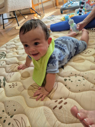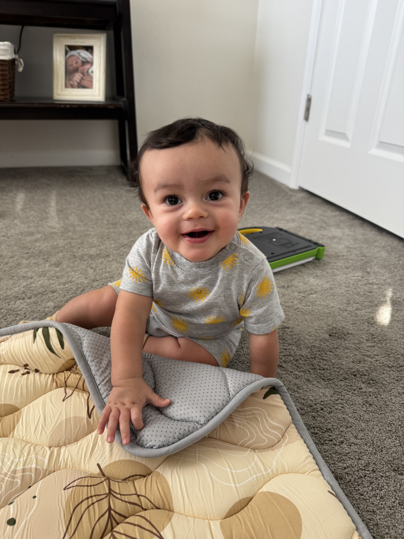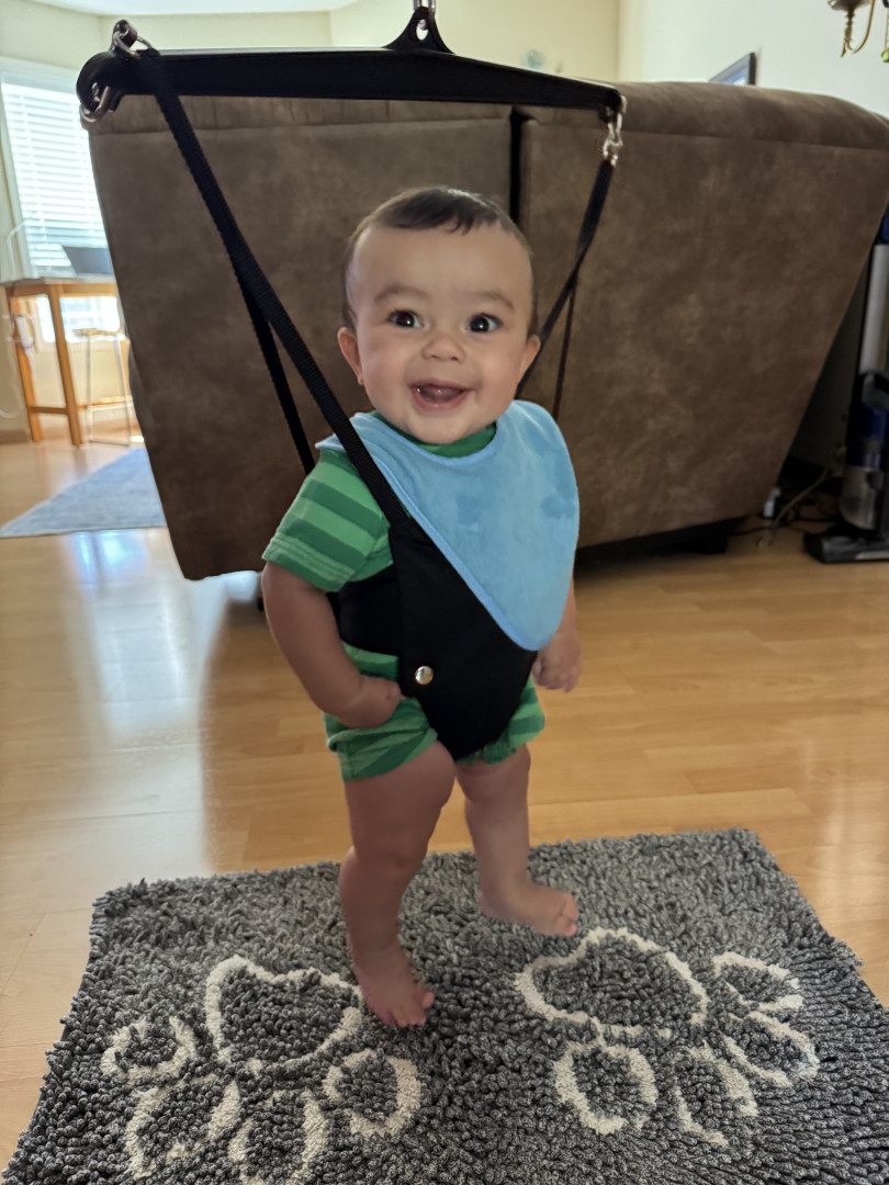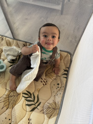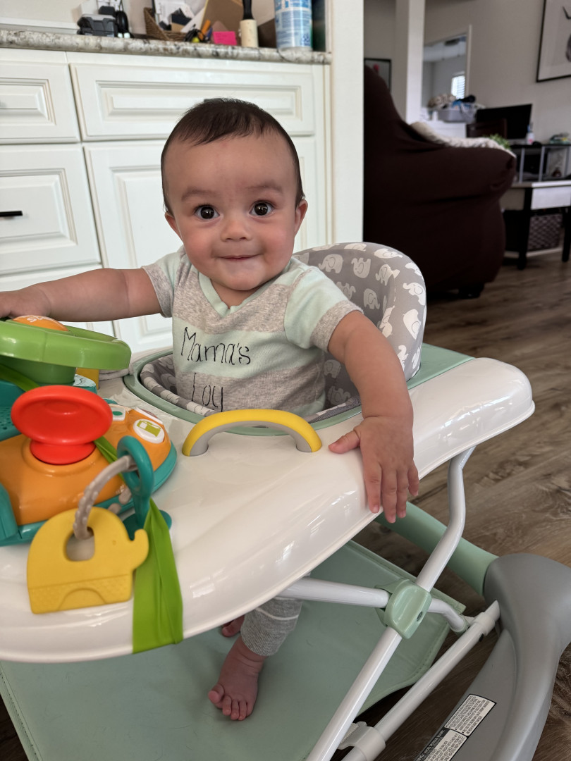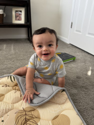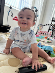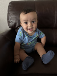 What are Brody's favorite activities?Brody loves being on the move! Whether it’s outdoors on a walk in his stroller or indoors cruising around in his baby walker. But when he does take the time to slow down you’ll find him people watching, listening to music, or enjoying Cocomelon. Back on the move you’ll find him delighting in showing off his rolling over and sitting up skills, jumping, playing with toys, or splashing around in a bubble bath. Brody also loves trying new foods, animals, and cuddling up with his family.