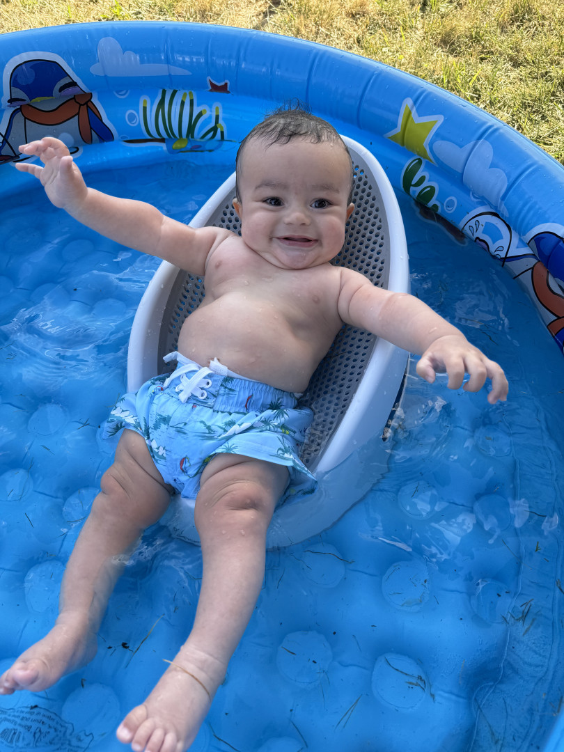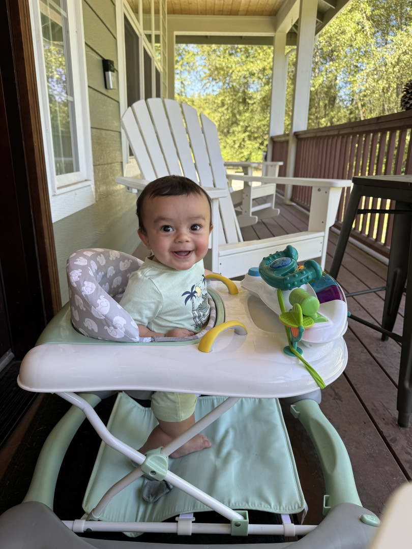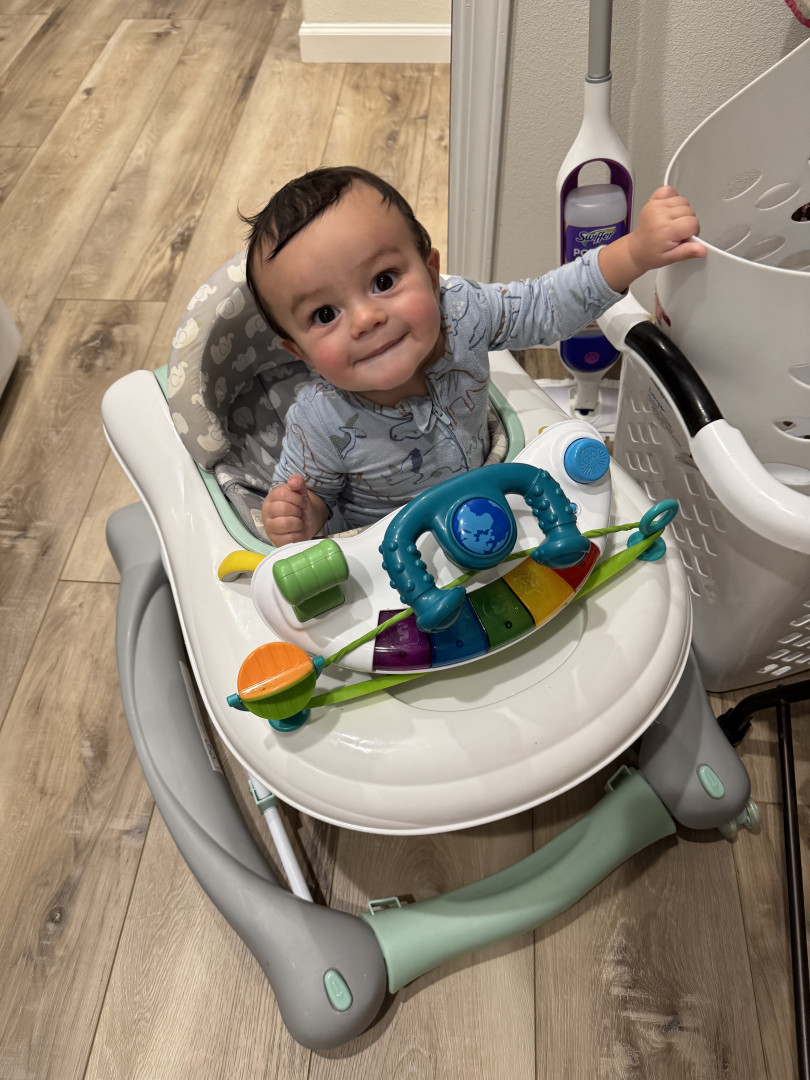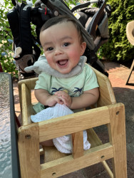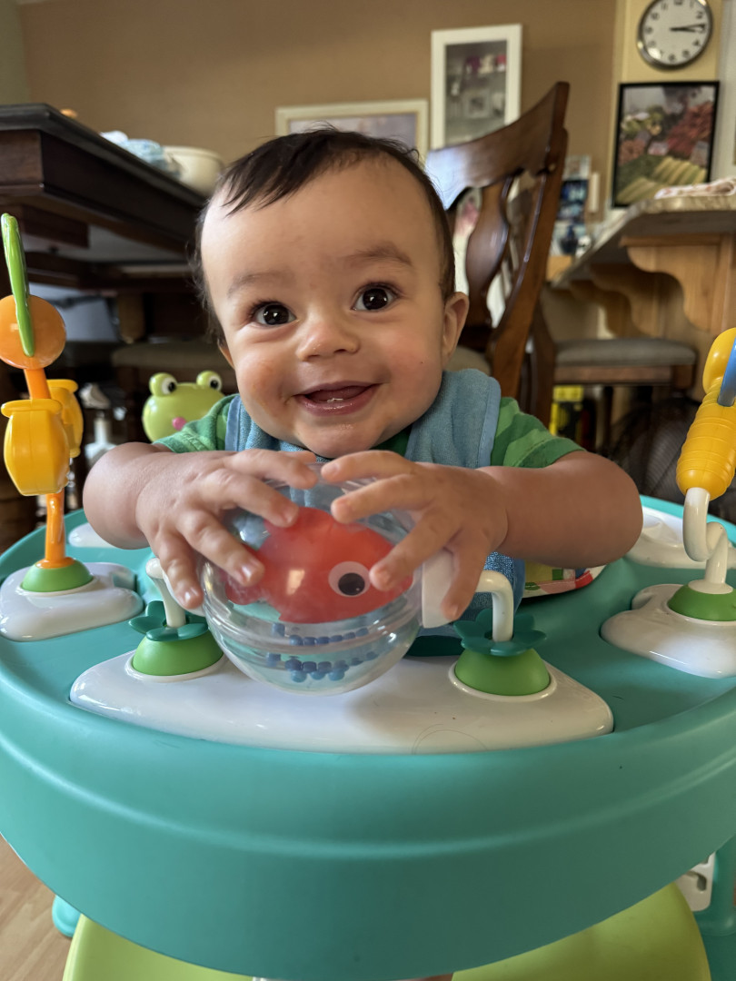 What are Brody's favorite activities?Brody loves being on the move! Whether it’s outdoors on a walk in his stroller or indoors cruising around in his baby walker. But when he does take the time to slow down you’ll find him people watching, listening to music, or enjoying Cocomelon. Back on the move you’ll find him delighting in showing off his rolling over and sitting up skills, jumping, playing with toys, or splashing around in a bubble bath. Brody also loves trying new foods, animals, and cuddling up with his family.