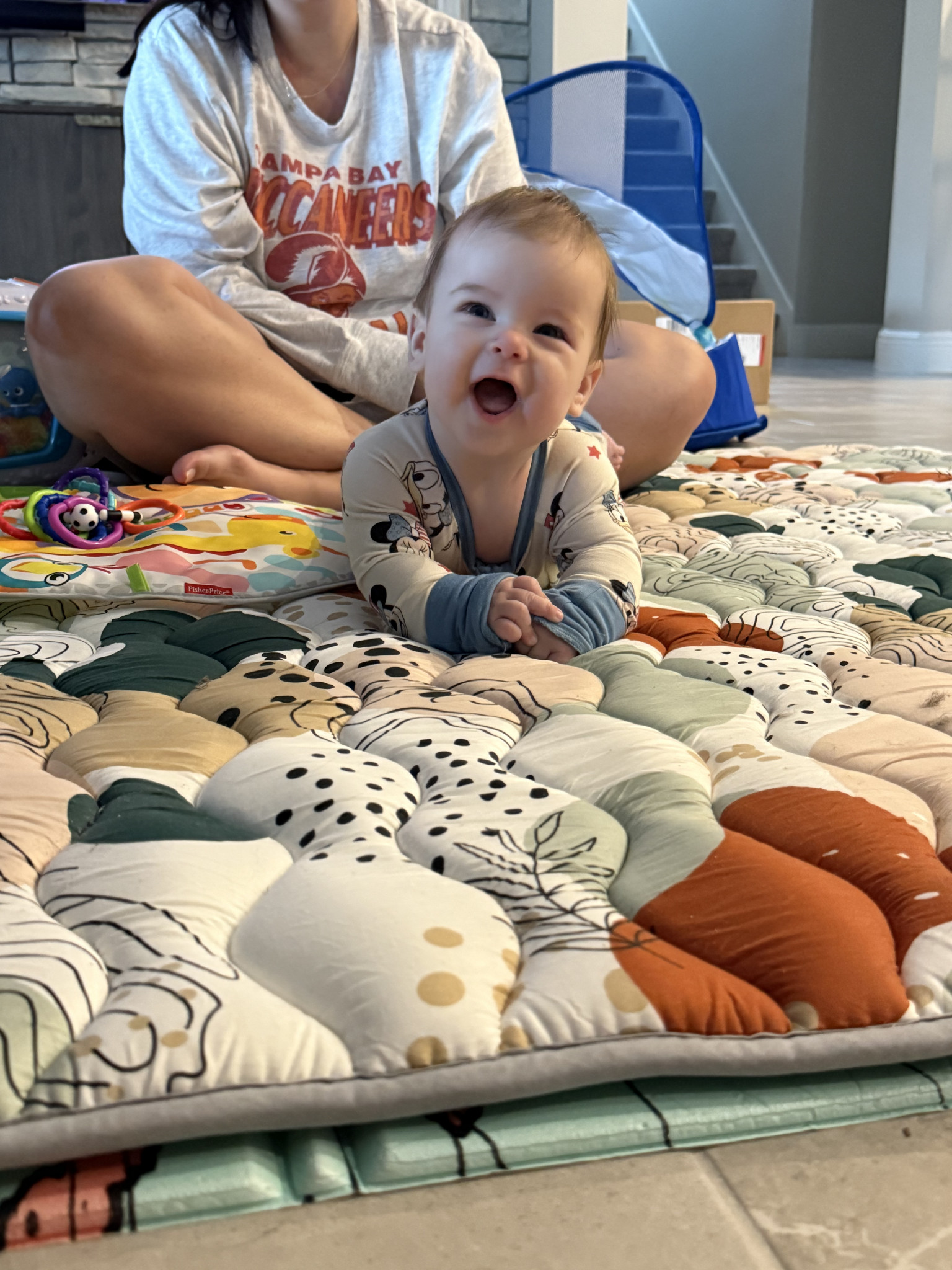 What are Brooks Johnson's favorite activities?He loves the purple monkey mat, the little Einstein aquarium, chewing on stuffies, playing with his orange ball, and being snuggled up in a blanket.