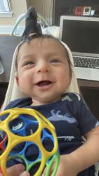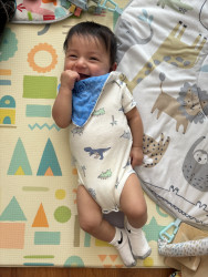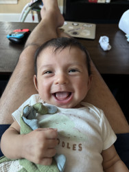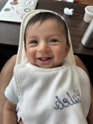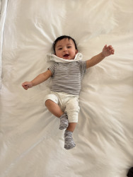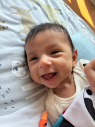 What are Caleb's favorite activities?Caleb’s days are full of giggles and adventure! He loves shaking his rattles to the beat, tossing toys from his high chair like it’s a game, and laughing at the silliest raspberry kisses. Music makes him wiggle with joy, and flipping through his board books is his favorite “reading” time. He bursts into laughter at funny sounds and splashes happily during bath time — turning every moment into a bubbly, joyful celebration!