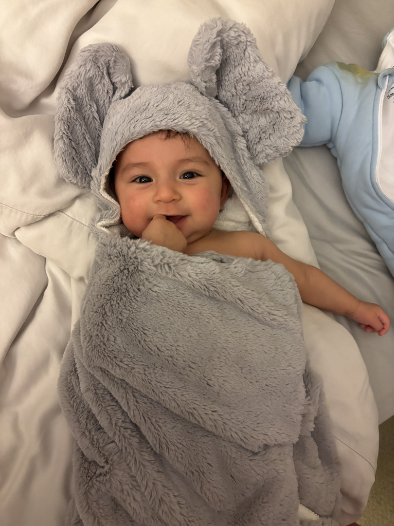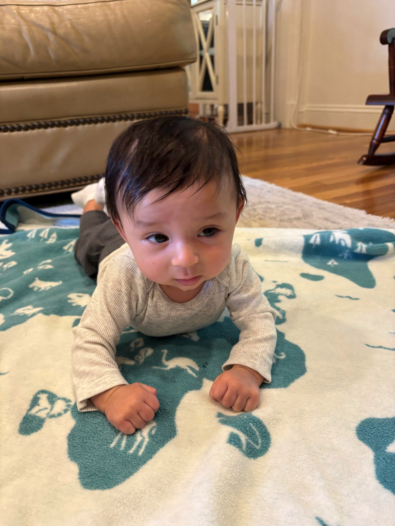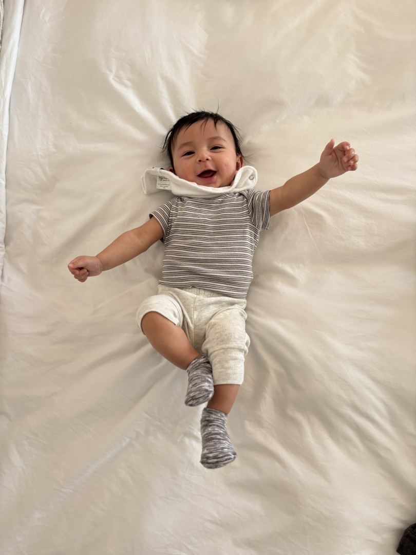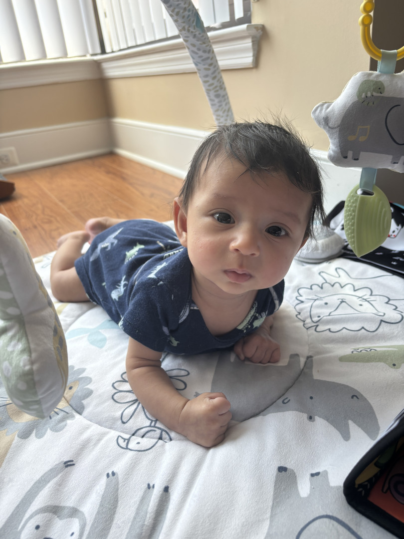 Baby Caleb is a bright, curious little explorer who loves crinkle books, spinning toys, cuddles, and his new favorite games: tummy time and peek-a-boo! He’s always observing the world around him, especially the trees outside and his big brother Waffles the Corgi in action. With his sweet giggles, big smiles, and endless curiosity, Caleb brings joy and wonder to every moment!