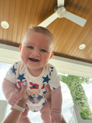 Callahan is truly the definition of joy. Smiles and everyone and anyone. Loves rubber duckies and all types of food besides green beans. He loves being around people and other babies of course. He is so good at independent play but also loves playing with our dogs. Not very fussy for a baby, only when he wants a long nap with his mom. He truly is so happy to do anything and his smile is the best.
