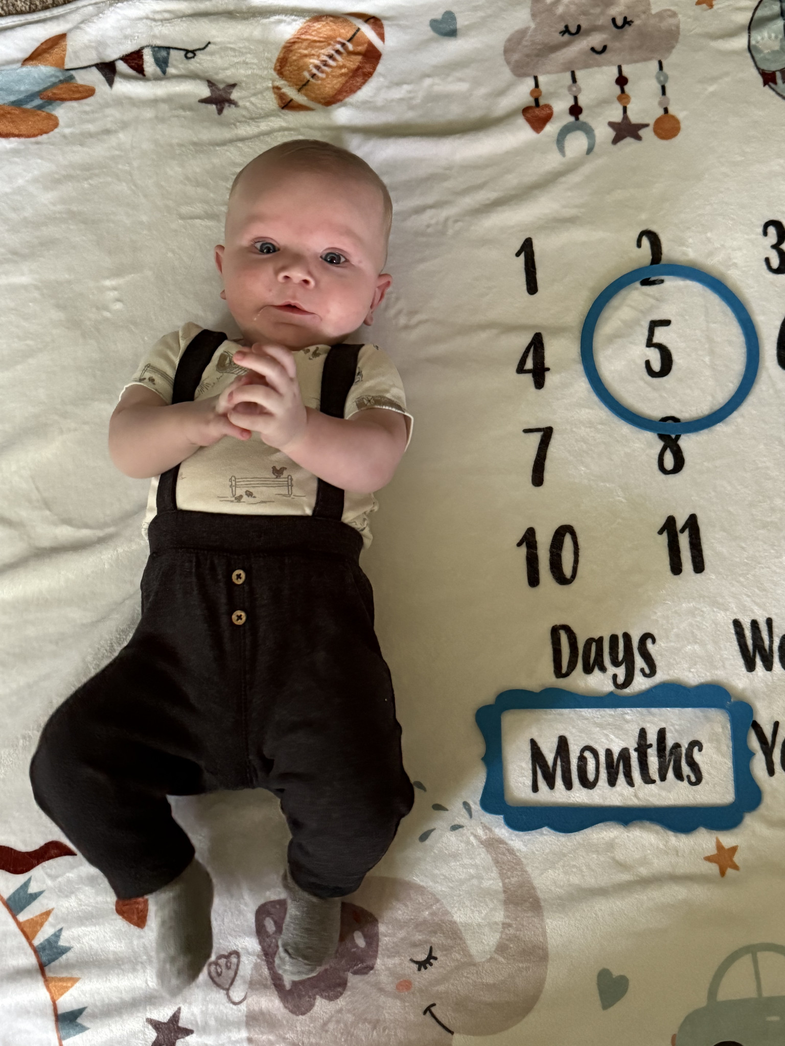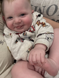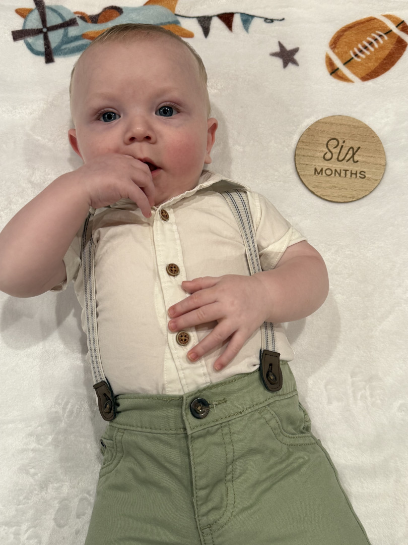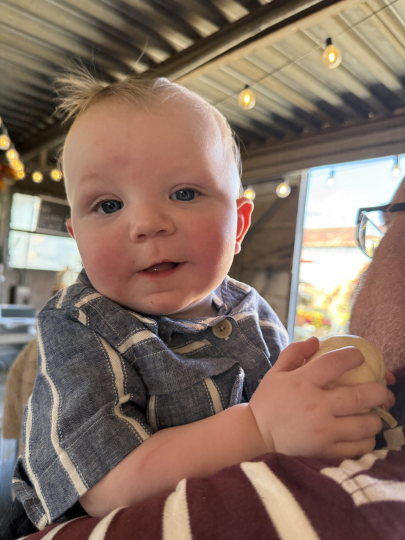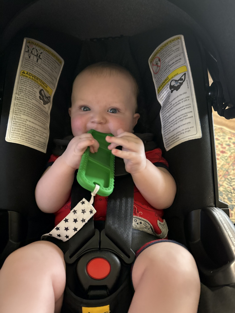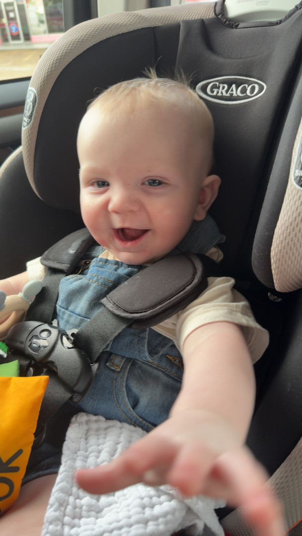 He is the sweetest baby you will ever meet. He is super social and loves to smile. He almost never needs a pacifier because he is just a happy boy.